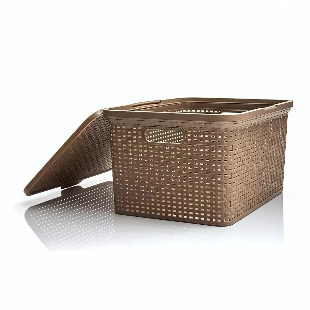 Корзина для хранения с крышкой "АРТЛАЙН", 30л, пластик, коричневый, 46х34.5х24.5см