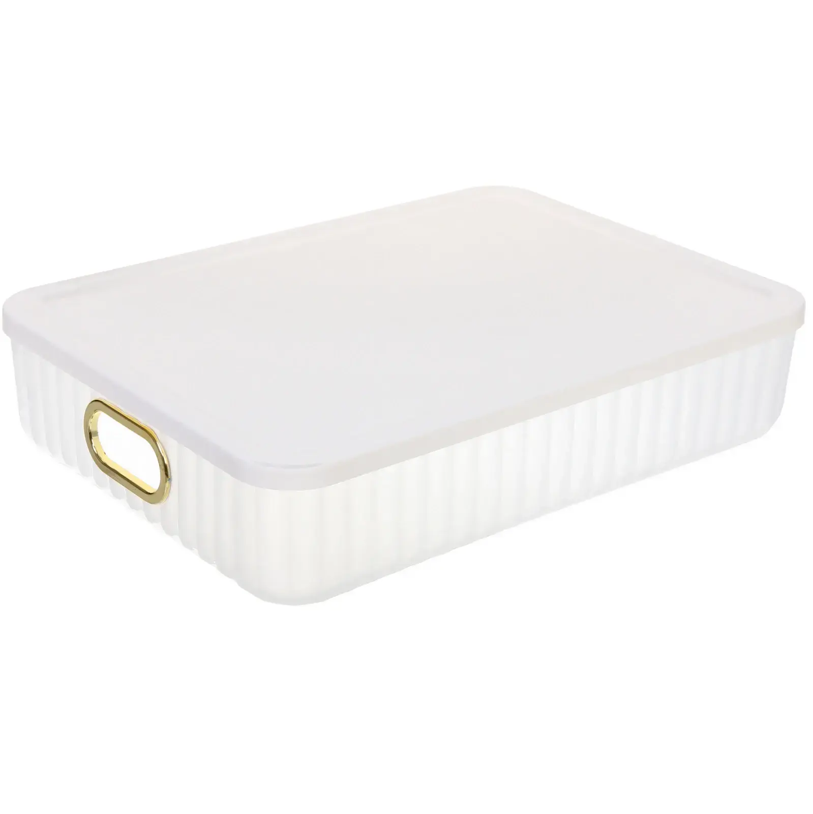 Эта корзина идеально подходит для хранения различных предметов, будь то игрушки, одежда или кухонные принадлежности. Благодаря крышке, ваши вещи будут защищены от пыли и загрязнений. Размеры 36х26х8,5 см делают её компактной и удобной для размещения на полках или в шкафах.