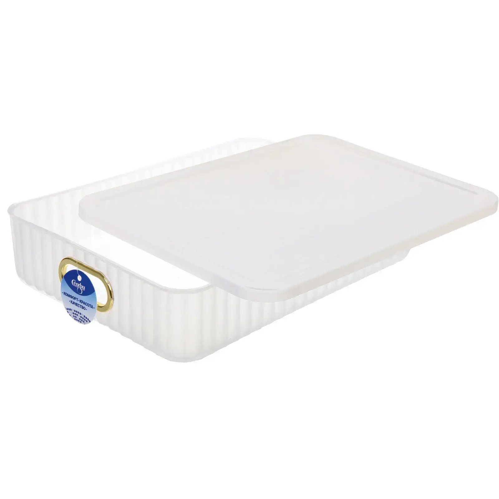 Выбирая корзину «ЭЛГАТТ», вы получаете не только стильный аксессуар, но и практичное решение для хранения. Рифленая текстура стенок обеспечивает надежный захват, а прозрачный материал позволяет быстро находить нужные вещи. Крышка плотно закрывает контейнер, что делает его идеальным для хранения продуктов или мелочей.