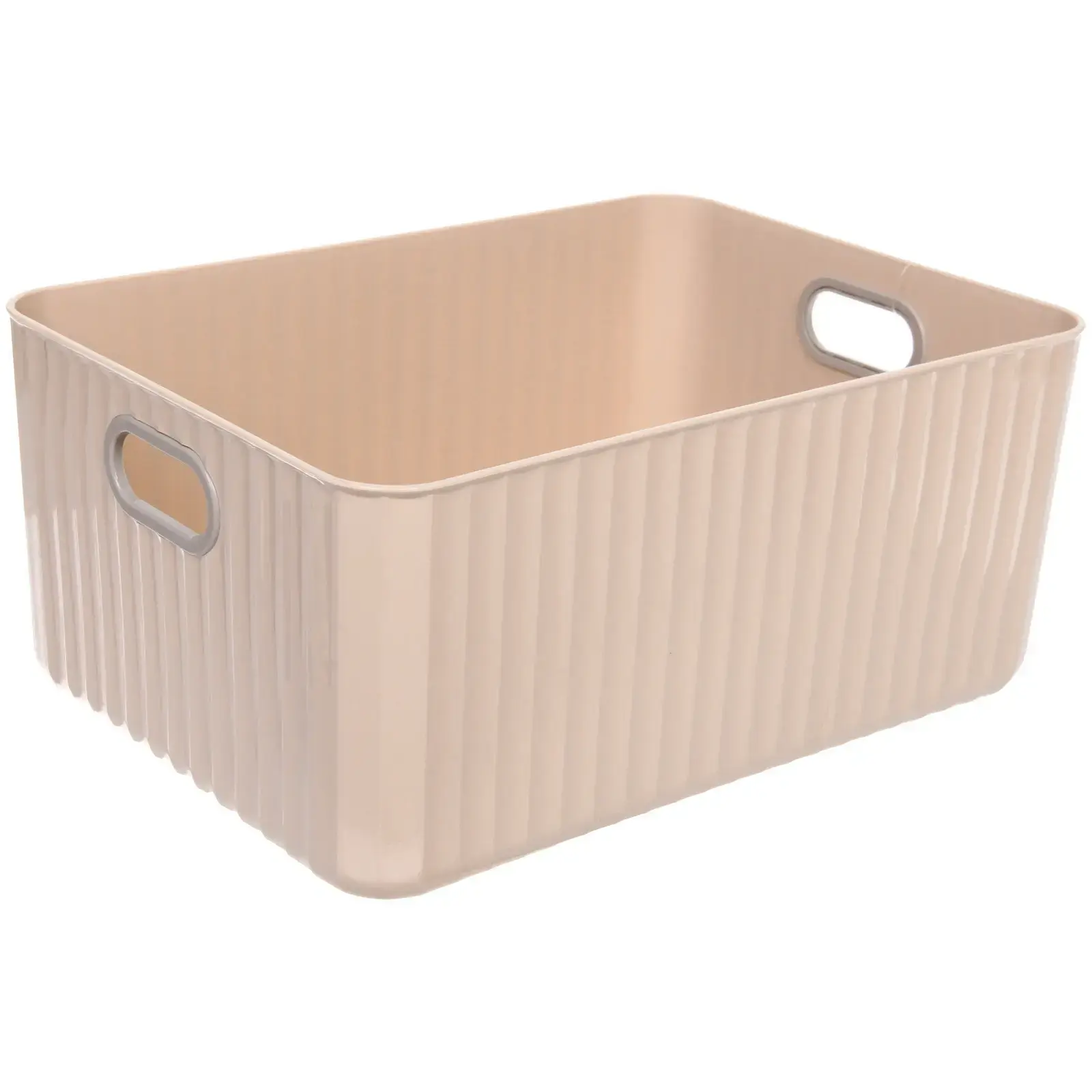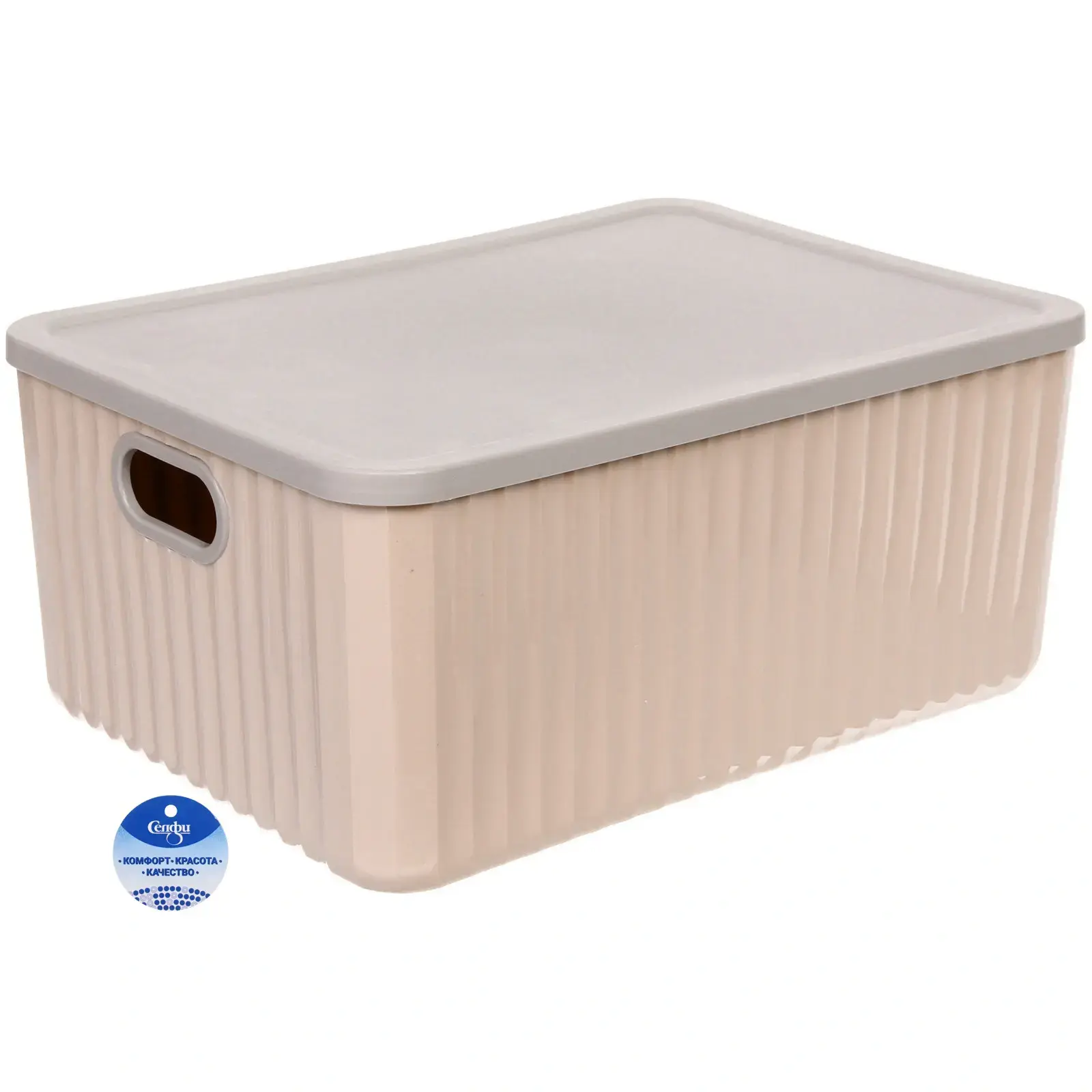 Корзина выполнена в светло-бежевом цвете с серой крышкой, что делает ее универсальной для любого интерьера. Рифленая текстура не только эстетична, но и практична, так как предотвращает скольжение. Размеры корзины 36х26х16,5 см позволяют использовать ее в различных помещениях, а легкий вес делает ее удобной в использовании.
