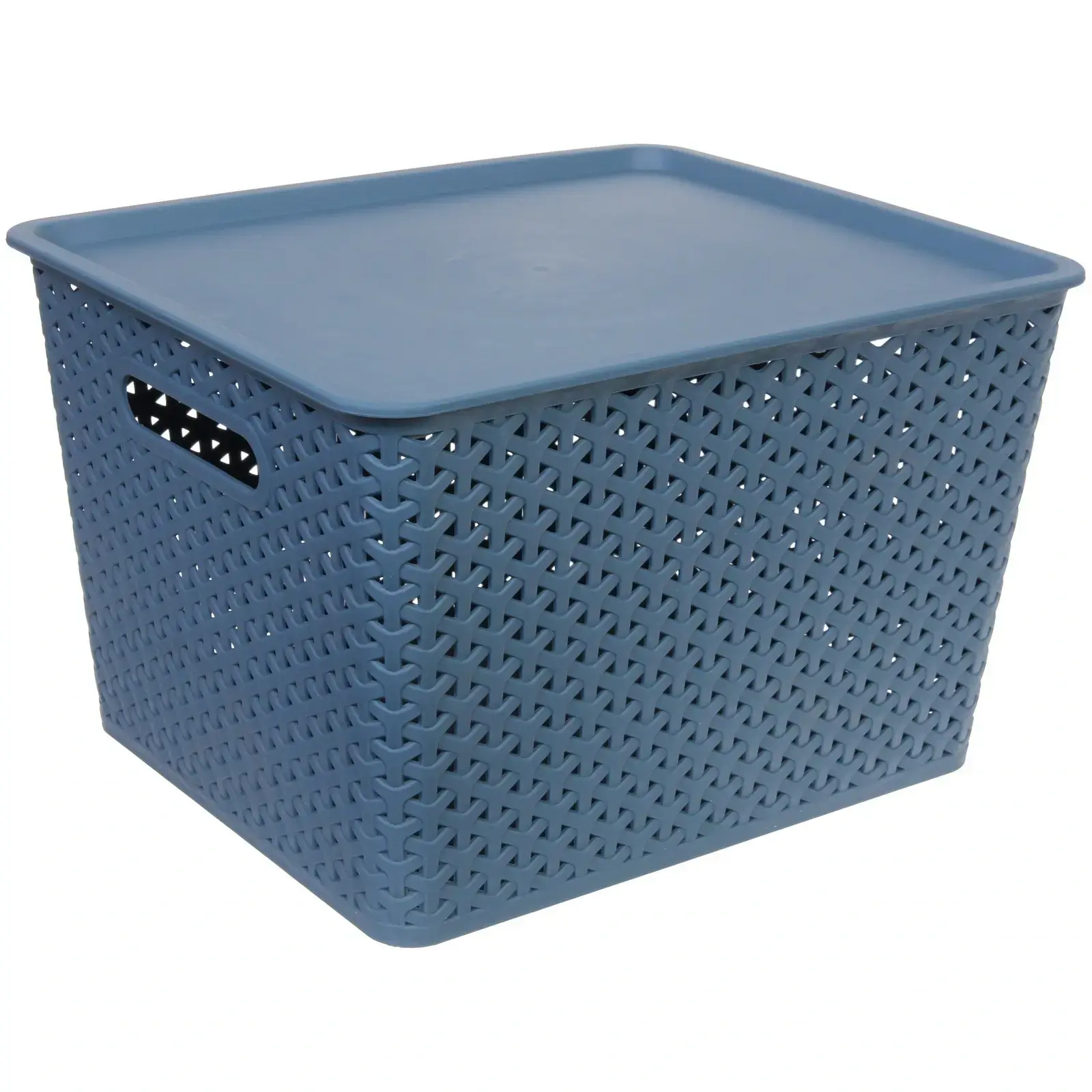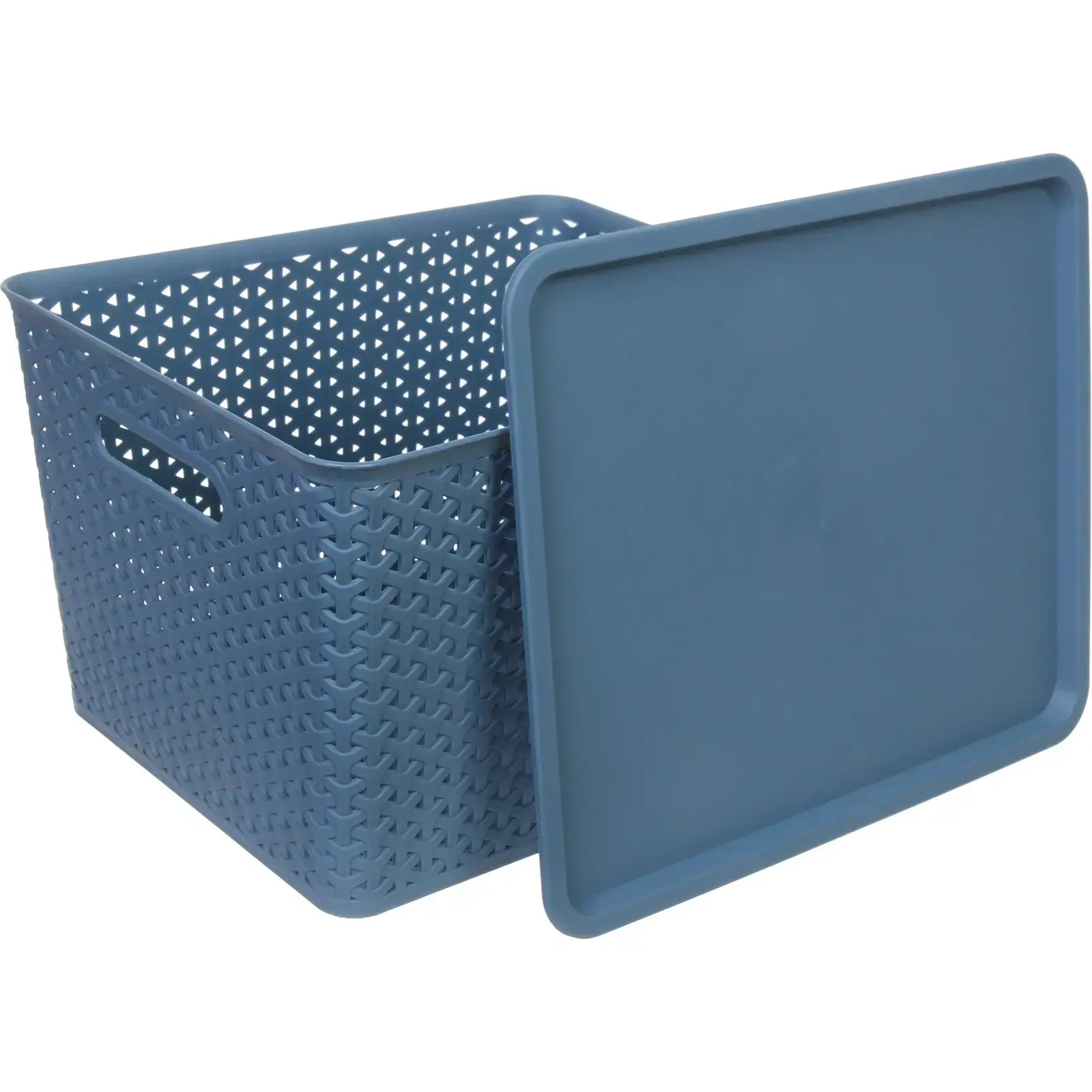 Эта корзина предназначена для хранения различных предметов — от игрушек до текстиля. Она оснащена двумя ручками, что делает ее удобной для переноски. Крышка надежно закрывает содержимое, защищая его от пыли и загрязнений. Корзина выполнена из прочного пластика, что гарантирует долговечность и легкость в уходе.