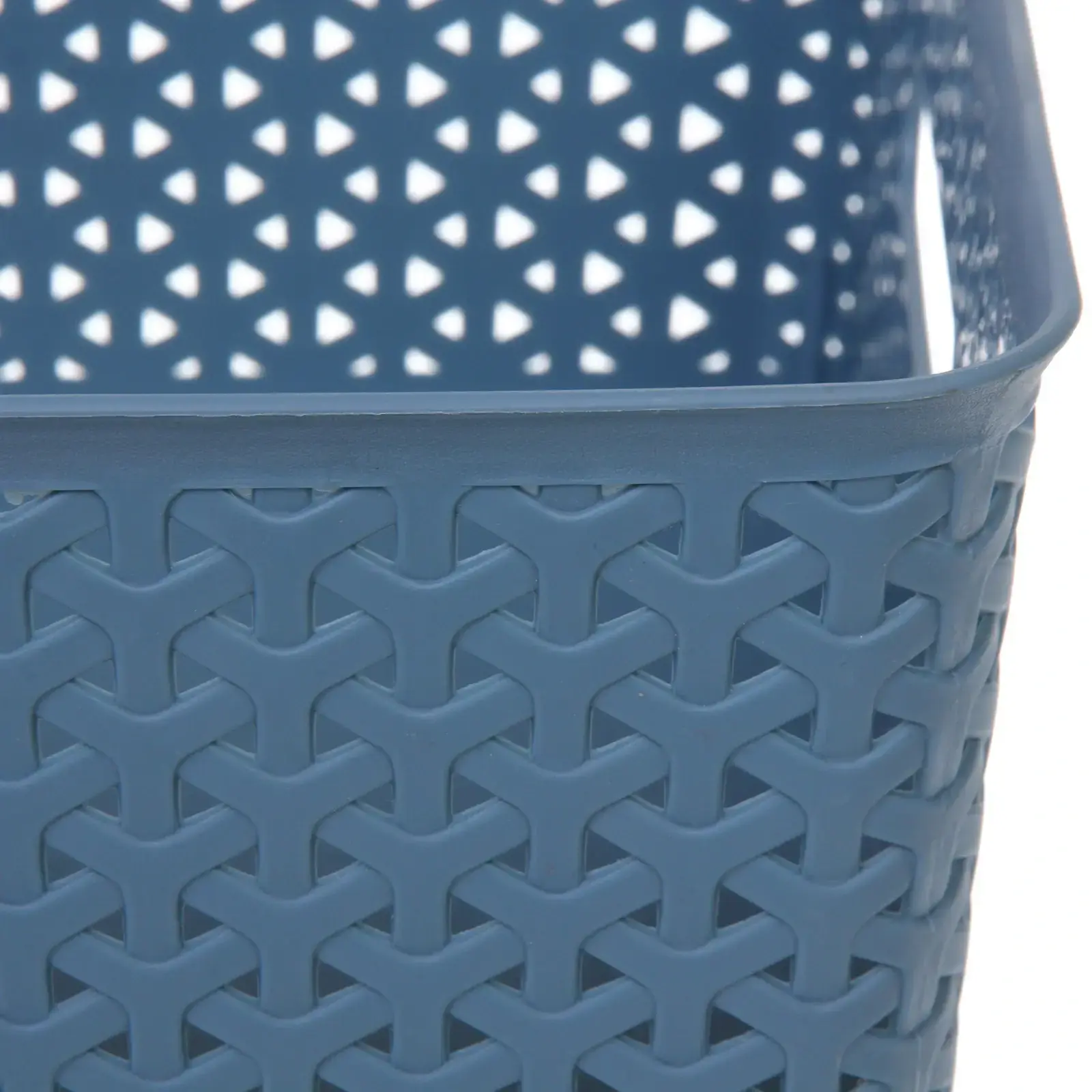 Корзина выполнена в светло-голубом цвете, который гармонично сочетается с любым интерьером. Она станет не только функциональным, но и стильным элементом вашего дома. Размеры 36х30х13,5 см делают её достаточно вместительной для хранения различных предметов, при этом она не занимает много места.