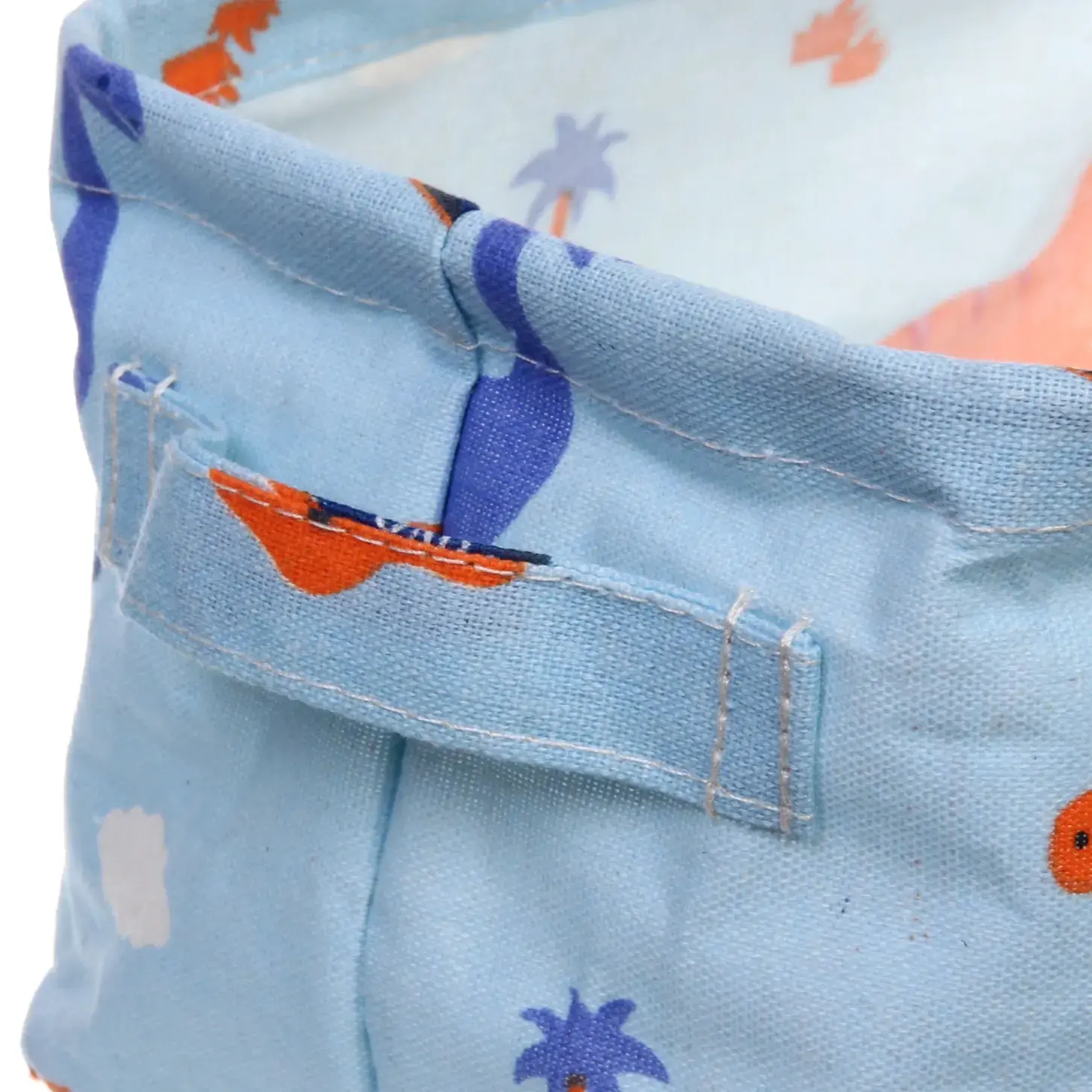 Корзина выполнена из текстильного материала, что обеспечивает её мягкость и безопасность для детей. Размеры 23х16х12 см делают её достаточно вместительной для хранения различных предметов. Яркий принт с динозаврами, пальмами и облаками добавляет веселья и радости в повседневную жизнь. Не упустите возможность сделать детскую комнату более организованной и красивой с корзиной «ФРАТТИ БУМ»!