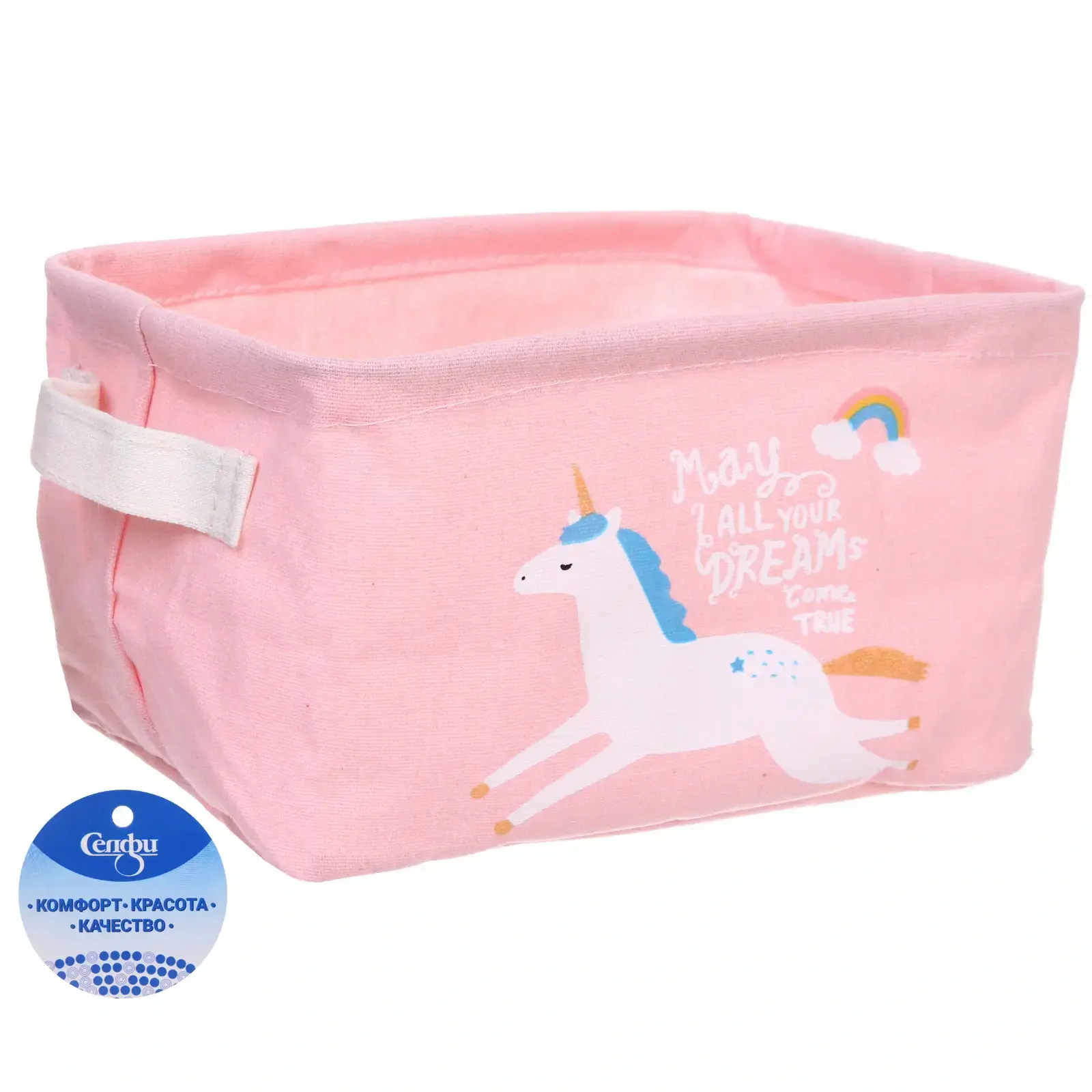 Создайте уют и порядок в вашем доме с помощью корзины для хранения с ручками «ФРАТТИ БУМ». Эта корзина не только функциональна, но и станет ярким акцентом в интерьере благодаря своему нежно-розовому цвету и милому принту с единорогом. Она идеально подходит для хранения игрушек, книг или других мелочей, что делает её незаменимым помощником в организации пространства.