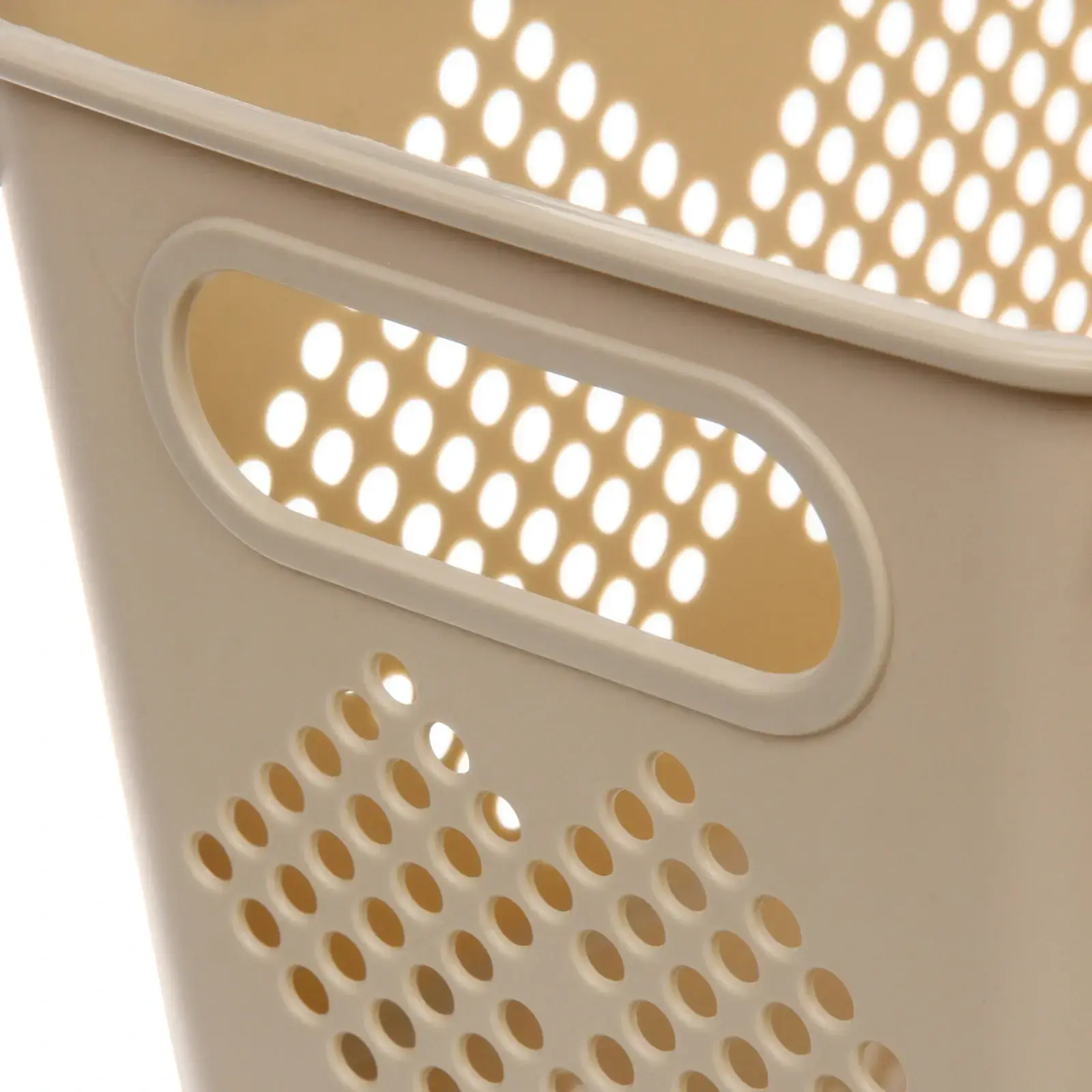 Корзина «БИРСТАД» изготовлена из прочного пластика, что гарантирует её долговечность и легкость. Перфорированные стенки обеспечивают вентиляцию, позволяя содержимому «дышать» и предотвращая накопление запахов. Это делает корзину идеальной для хранения одежды, игрушек или даже продуктов.