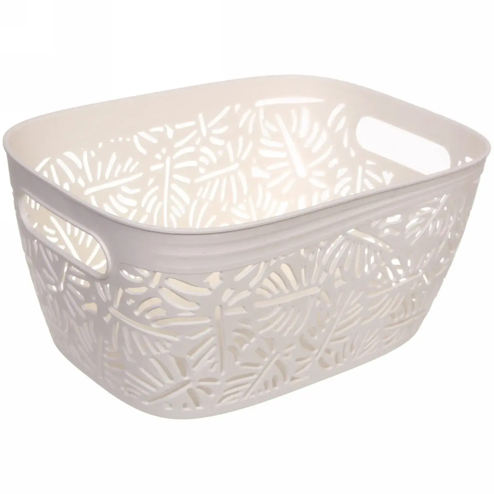 Корзина для хранения «Фратория», пластик, дымчато-белый, 34,5×24,7×17см, декоративные узоры, ручки