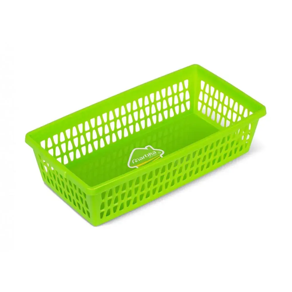 Эта прямоугольная корзина из пластика — простое и эффективное решение для наведения порядка в любом помещении. Её сетчатая структура обеспечивает хорошую вентиляцию содержимого, а прочный материал гарантирует долгий срок службы. Идеальный помощник для хранения мелочей, игрушек, канцелярии или косметики.