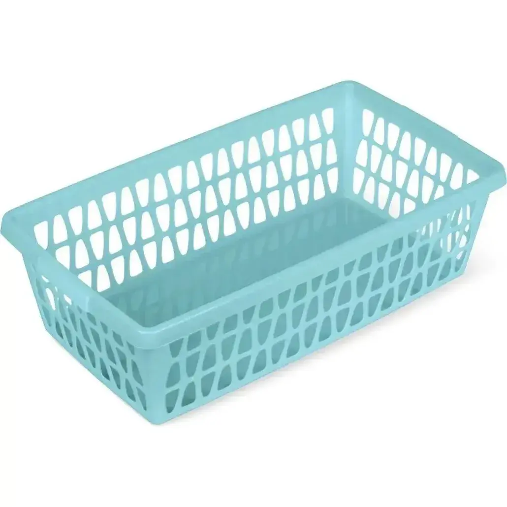 Корзина для хранения пластиковая 25х7см, бирюзовая, вентилируемая с отверстиями