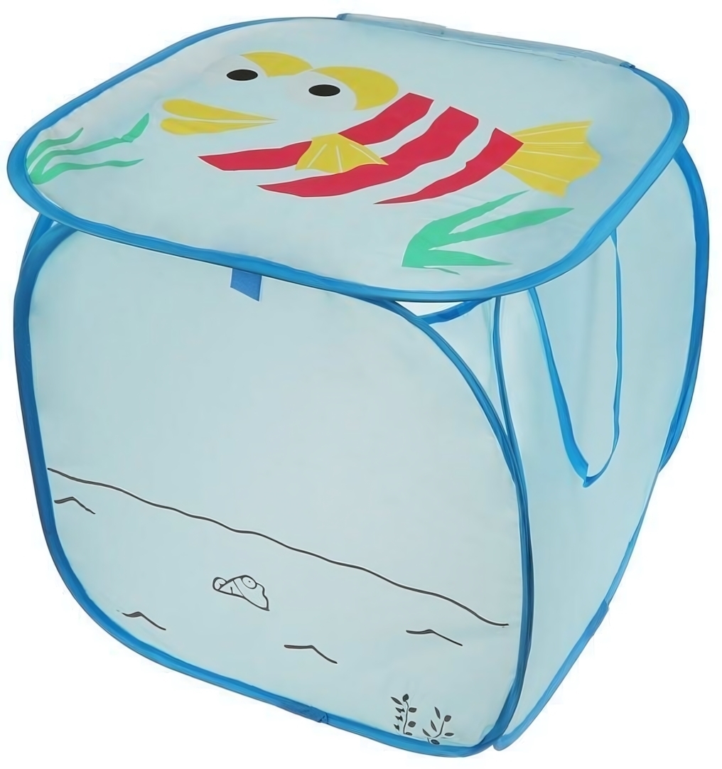 Корзина для игрушек 43x43x43см голубая с рыбками, практичное хранение