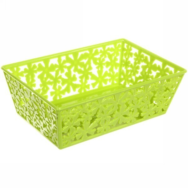 Корзина имеет размеры 21,8х14х7,5 см, что делает её идеальной для хранения мелочей, игрушек, канцелярии или косметики. Открытая структура с цветочным узором добавляет эстетическую привлекательность и позволяет легко находить нужные вещи. Она прекрасно впишется в любой интерьер, будь то детская комната, офис или кухня.