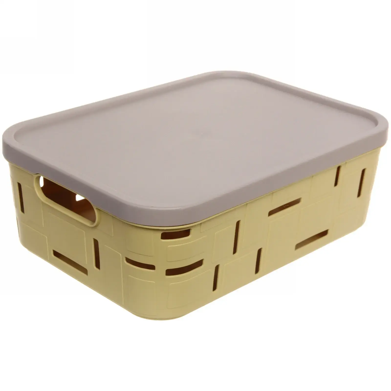 Корзина для мелочей «Корсика» с крышкой, пластик, желтая, 35х25х12,5см, перфорация, ручки