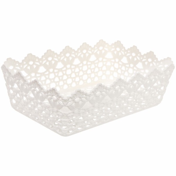 Благодаря ажурному дизайну содержимое всегда на виду, а фигурные элементы по верхнему краю добавляют нотку домашнего уюта. Прочный пластик обеспечивает долговечность, а компактные размеры (29х19х9.5см) позволяют разместить корзину даже в ограниченном пространстве.