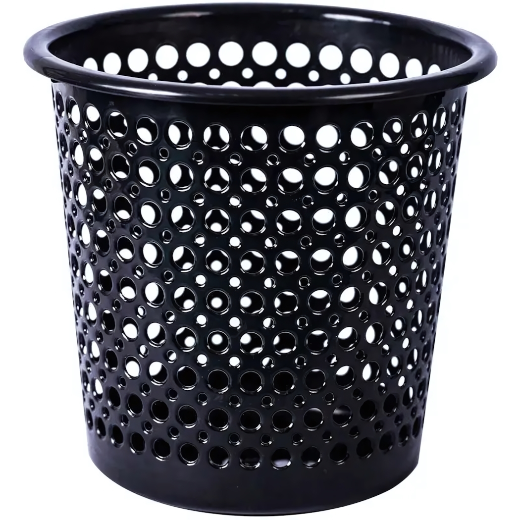 Благодаря округлой форме корзина занимает минимум пространства. Диаметр соответствует стандартным офисным корзинам — легко размещается под столом или в углу комнаты.