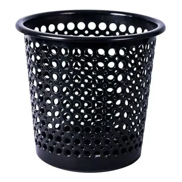 Круглая мусорная корзина с перфорированными стенками обеспечивает естественную циркуляцию воздуха, предотвращая застой запахов. Универсальная модель идеально впишется как в офисный интерьер, так и в домашнее пространство.