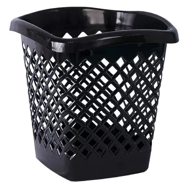 Корзина для мусора квадратная, пластик, черный цвет, устойчивая основа, для офиса и дома