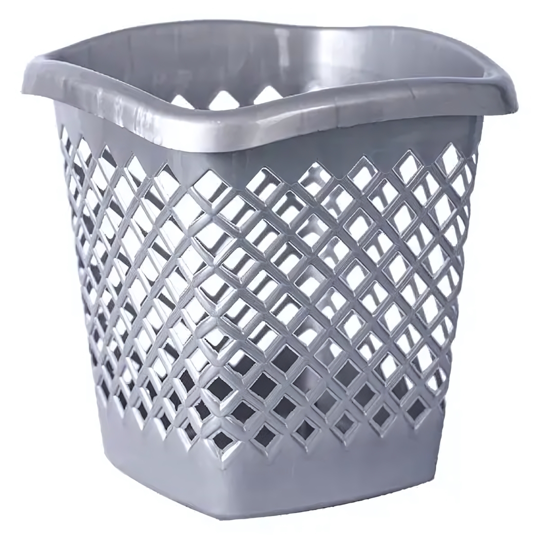 Серая квадратная корзина для мусора станет незаменимым помощником в поддержании чистоты и порядка. Её современный дизайн с решетчатой структурой не только привлекателен, но и функционален: обеспечивает отличную вентиляцию и уменьшает накопление запахов.