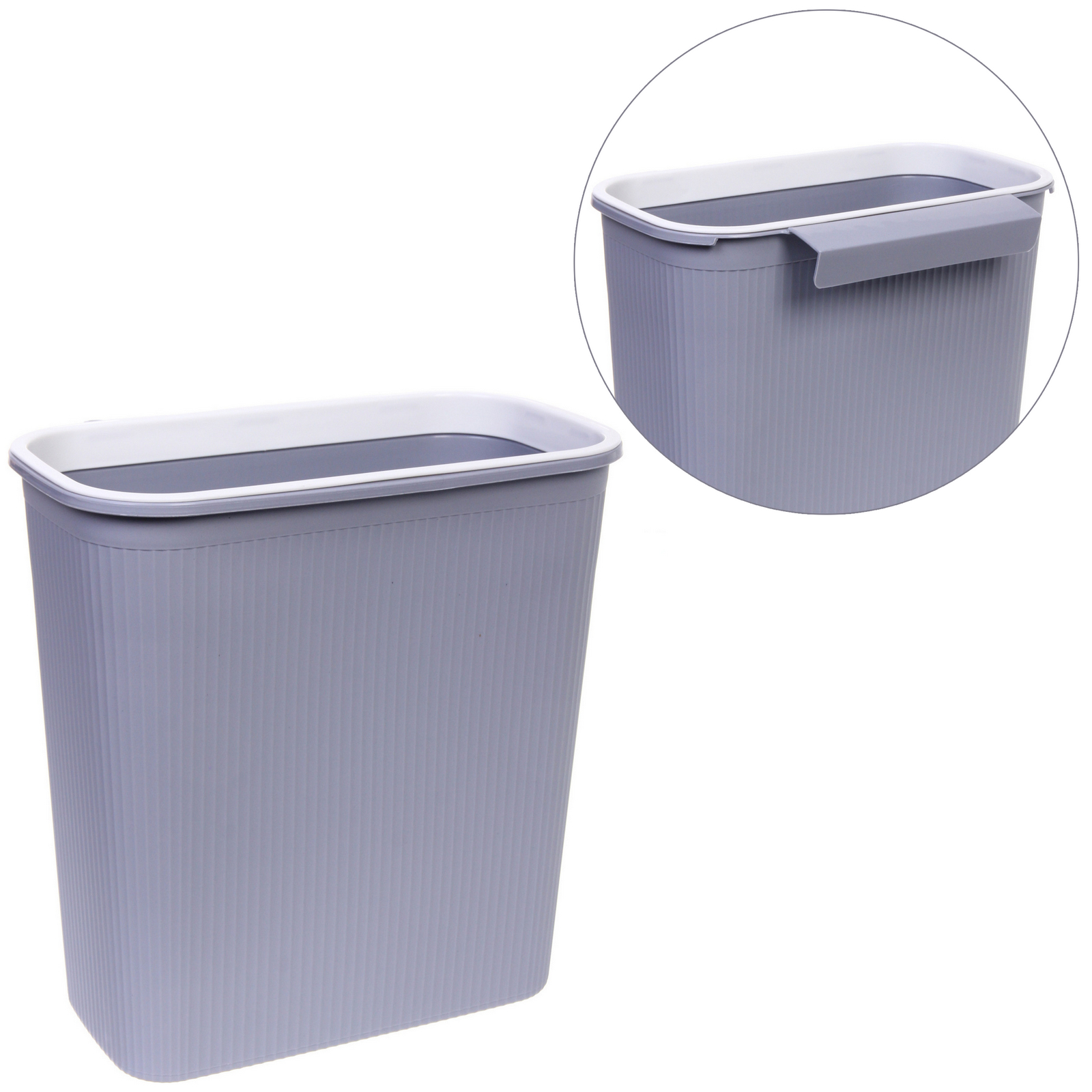 Представляем вам подвесную корзину для мусора, которая станет идеальным решением для вашего дома. С её помощью вы сможете сэкономить пространство и сделать уборку более комфортной. Благодаря стильному минималистичному дизайну, корзина легко впишется в любой интерьер, а её серый цвет с белым верхним ободком добавит элегантности вашему пространству.