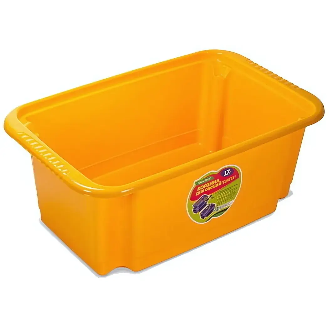 Объём 17 литров оптимален для хранения стандартного урожая картофеля или лука. Ярко-жёлтый цвет помогает быстро находить нужные предметы среди других контейнеров. Изготовлена из экологичного пластика без резкого запаха.