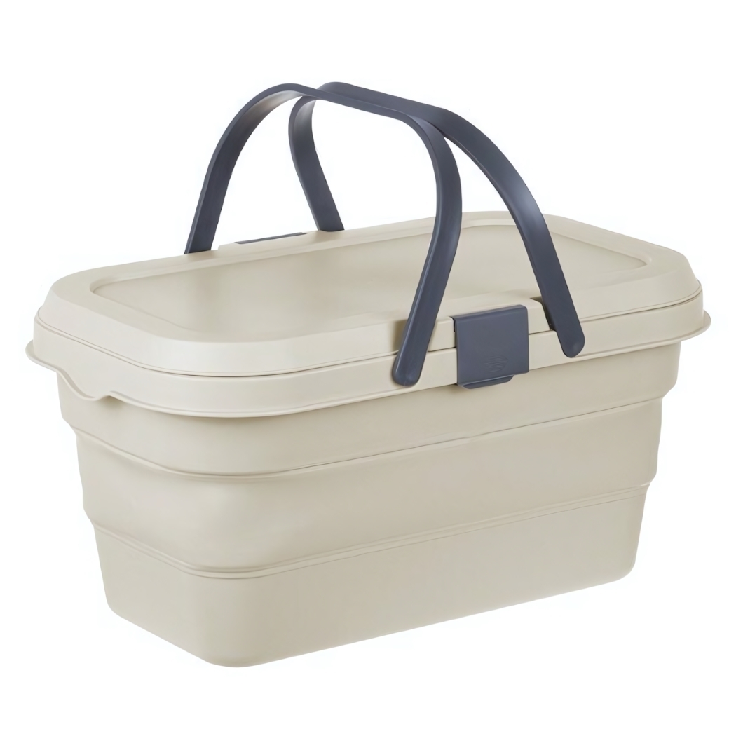 Корзина оснащена удобными ручками для переноски, что делает её идеальной для транспортировки. Складная конструкция позволяет легко разместить её в любом уголке вашего дома или автомобиля, не занимая много места. Чтобы разложить корзину, просто снимите крышку, надавите на дно и потяните обод к себе. Это простое действие позволяет быстро подготовить корзину к использованию.