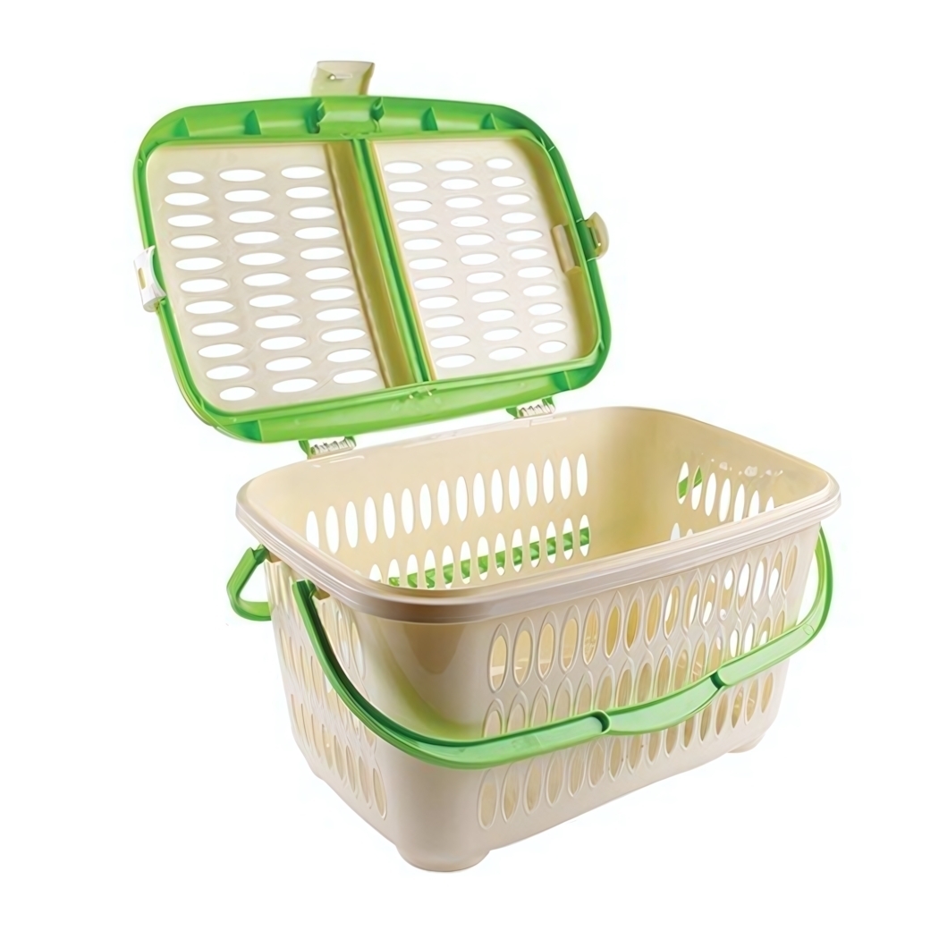 Эта плетеная корзина для пикника в зеленом и кремовом цветах станет вашим незаменимым спутником на отдыхе на природе. Она не только привлекает внимание своим дизайном, но и обеспечивает комфортное использование благодаря удобным ручкам и крышке с ячеистой структурой, которая позволяет воздуху циркулировать. С ней вы сможете легко организовать свои вещи и наслаждаться пикником без лишних забот.