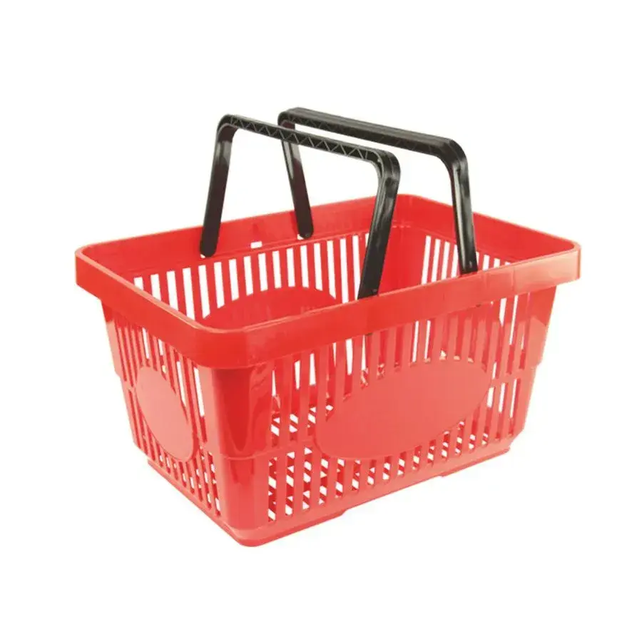 Корзина покупательская пластиковая с ручками, 42.5х30х22.5 см, красный, отверстия для вентиляции
