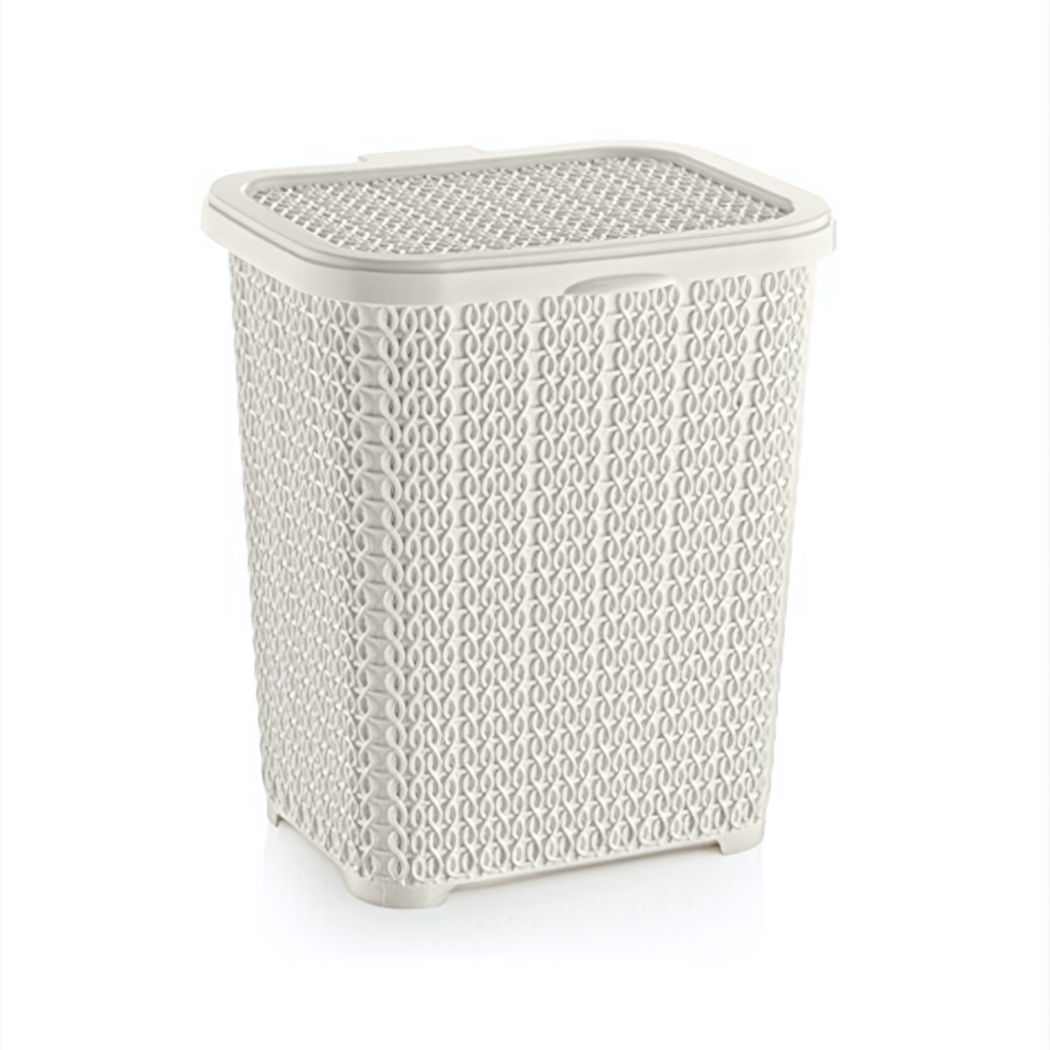 Корзина имеет прямоугольную форму с закругленными углами и рельефным узором, что придаёт ей стильный вид. Ножки на дне обеспечивают устойчивость и защиту от влаги. Вы можете комбинировать её с другими аксессуарами для ванной, такими как корзина для белья или ведро для мусора, создавая гармоничный комплект в едином стиле.