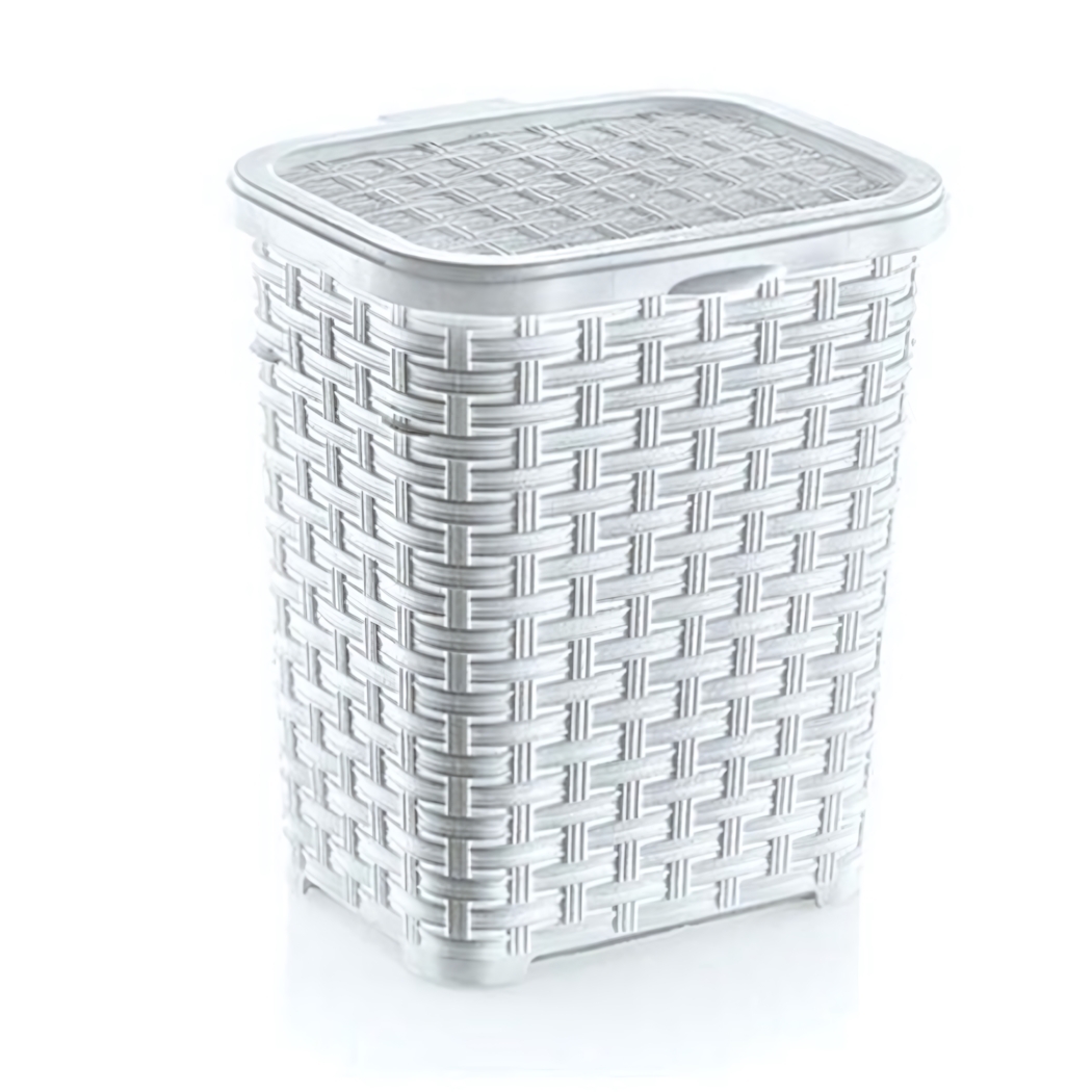 Корзина предназначена для хранения стирального порошка и других моющих средств. Она оснащена съёмной крышкой с застёжкой, что позволяет надежно закрывать содержимое и защищать его от влаги и пыли. Прямоугольная форма обеспечивает удобство размещения на полках или в шкафах, а компактные размеры позволяют экономить пространство.