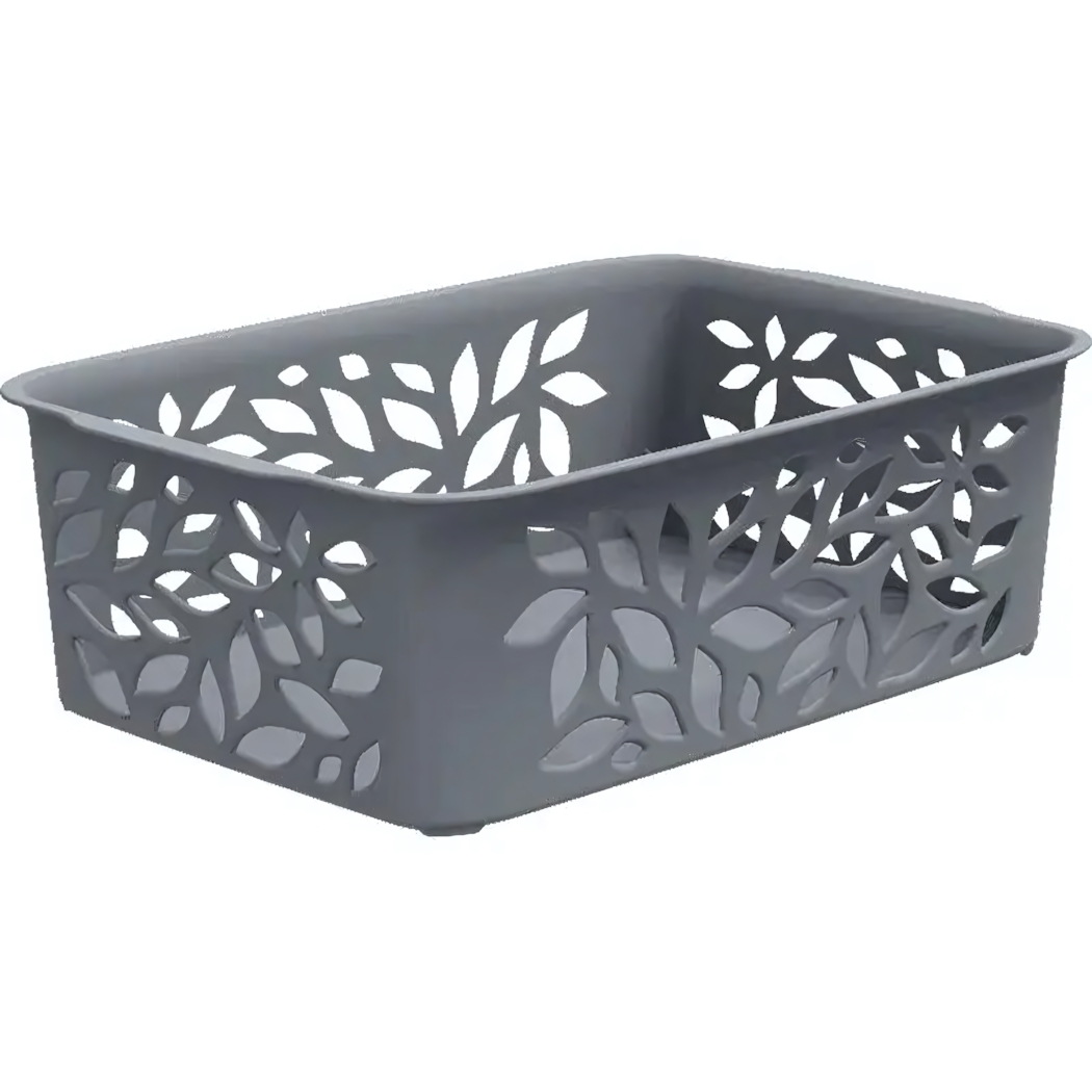 Корзина пластиковая с декором листья, 1,2л, 18,4х6,2см, серый, для организации хранения