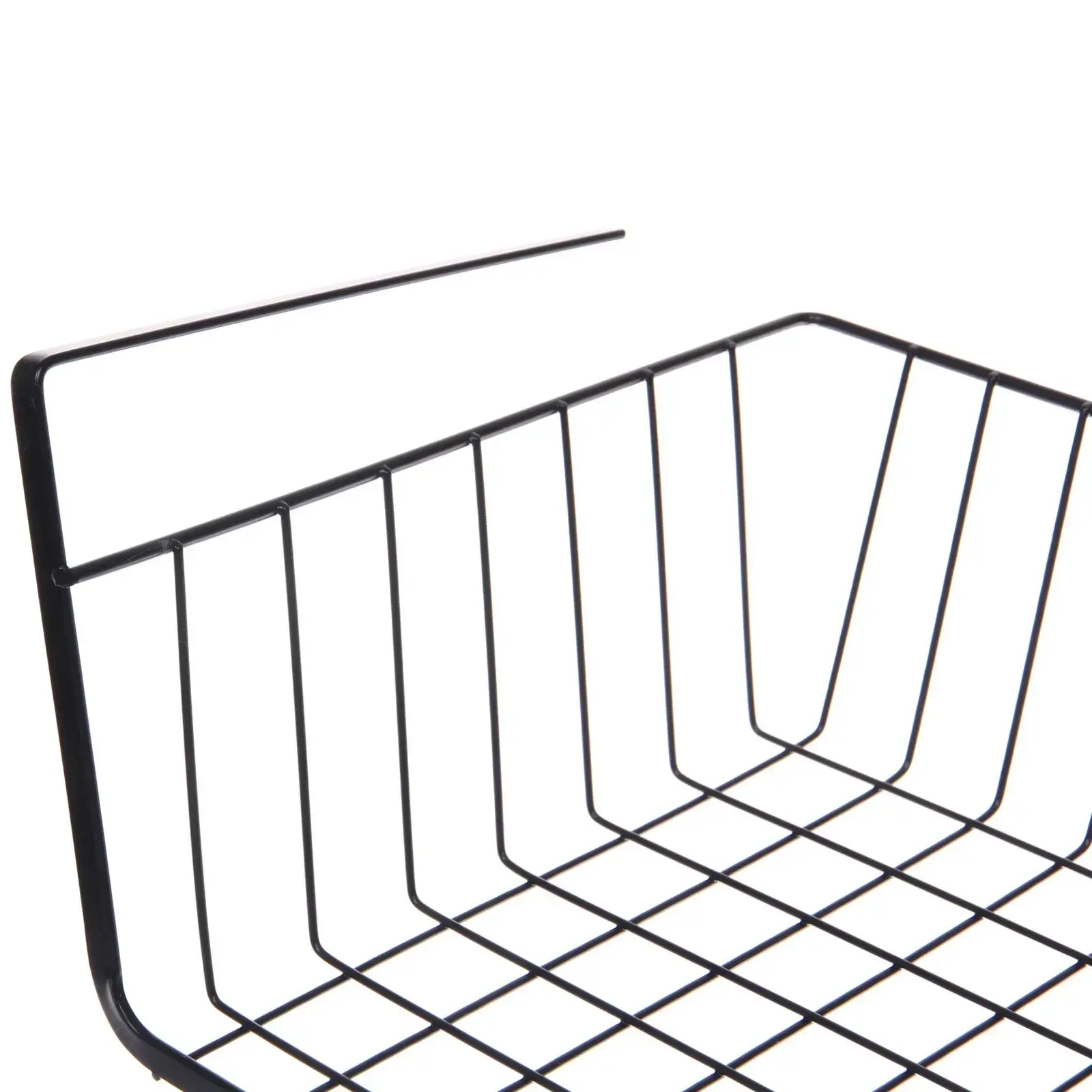 Прочная конструкция выдерживает до 15 кг благодаря перекрёстному плетению металлических прутьев. Боковые крепления-ручки позволяют зафиксировать корзину на крюках или полкодержателях. Лёгкая чистка влажной тканью сохранит презентабельный вид.