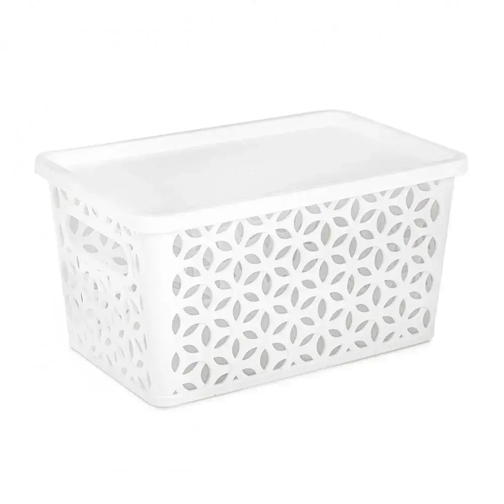 Корзина пластиковая с крышкой, комплект 15 шт, 290х150 мм, белый, для хранения вещей