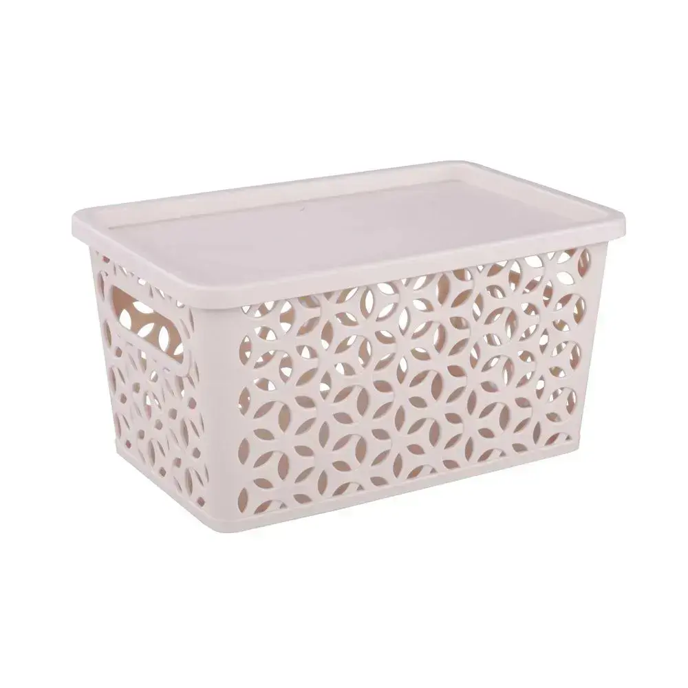Корзина для хранения 'Мираж' с крышкой, пластик, 290х150мм, бежевый, комплект 15 шт