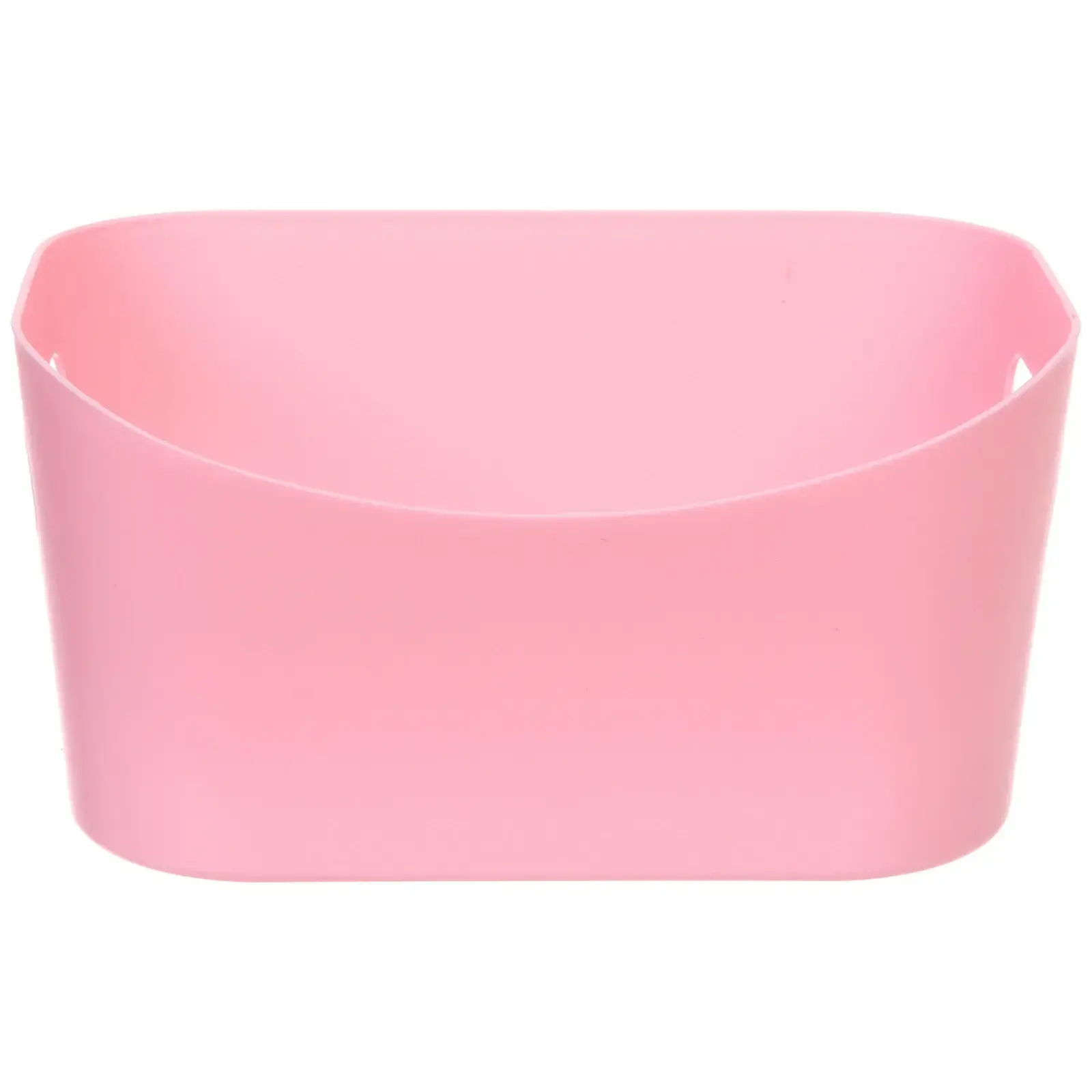 Корзина выполнена из прочного пластика, что гарантирует долговечность и надежность в использовании. Она идеально подходит для хранения игрушек, косметики, канцелярских принадлежностей и других мелочей. Удобные ручки по бокам позволяют легко переносить корзину, что делает её практичным решением для организации пространства.