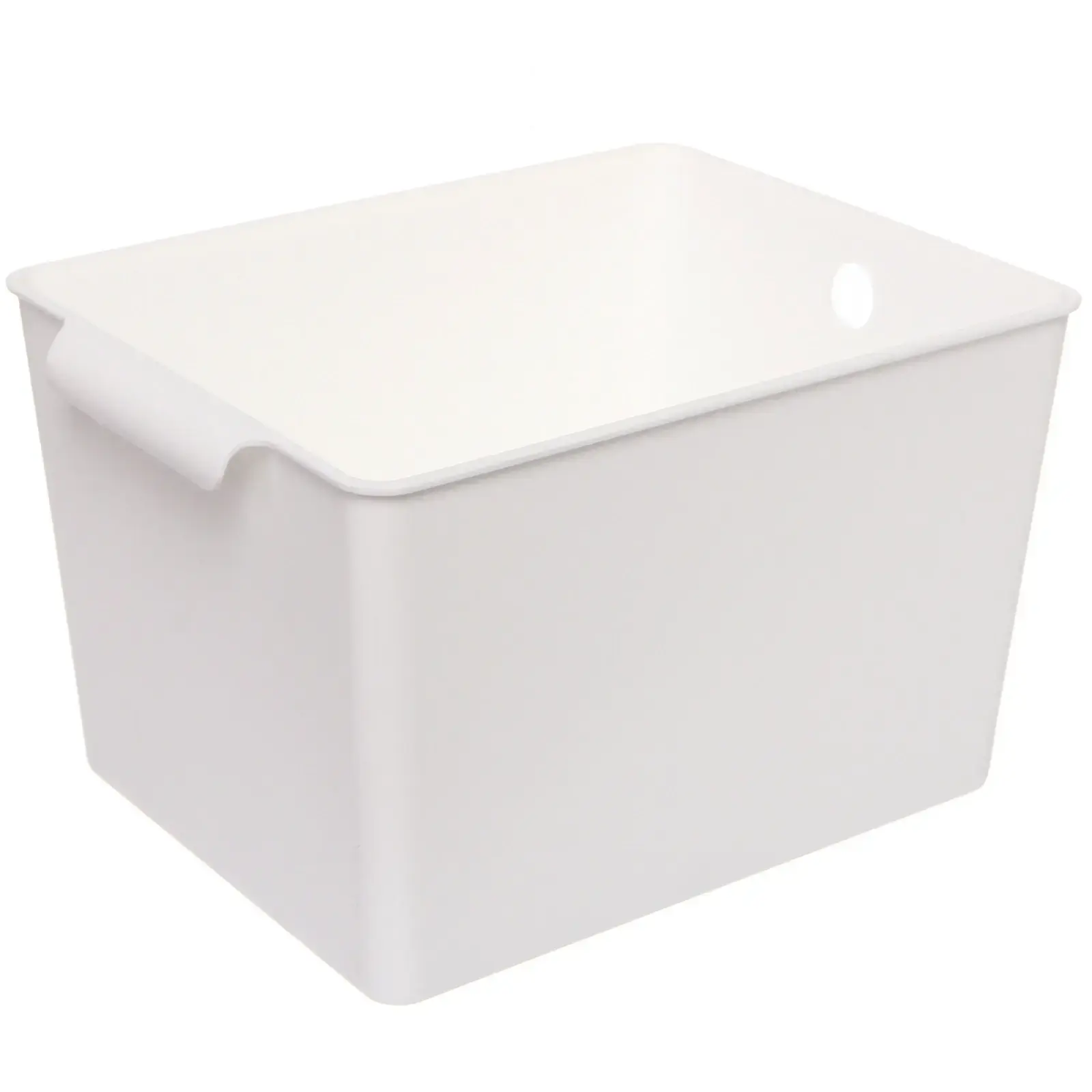 Прямоугольная форма корзины позволяет эффективно использовать пространство на полках и в шкафах. Открытая конструкция без крышки обеспечивает быстрый доступ к содержимому. Материал устойчив к деформациям и сохраняет форму даже при полной загрузке.