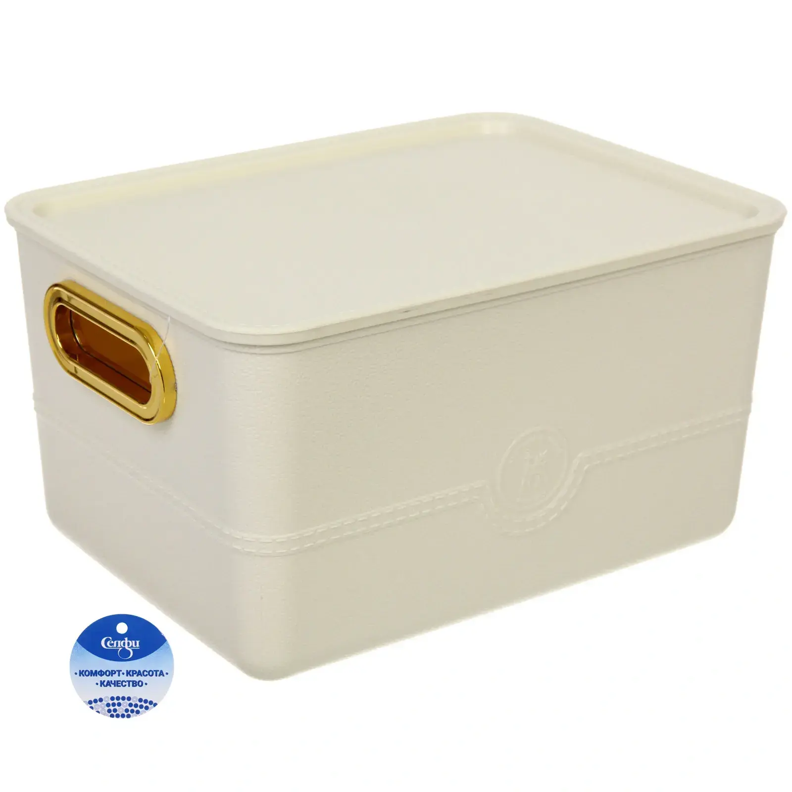 Корзина-органайзер 'ОКСФОРД' с крышкой, пластик, цвет айвори, 27,6*20,5*15,2см