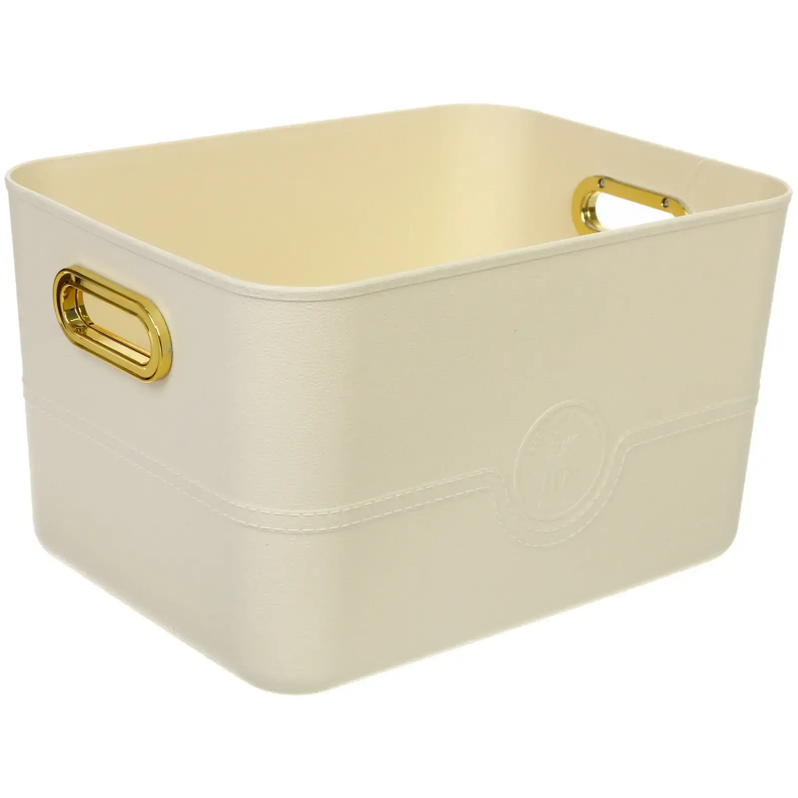 Стильная корзина-органайзер 'ОКСФОРД' станет идеальным решением для хранения вещей. Благодаря нейтральному цвету айвори и элегантной текстуре, напоминающей кожу, она органично впишется в любой интерьер.