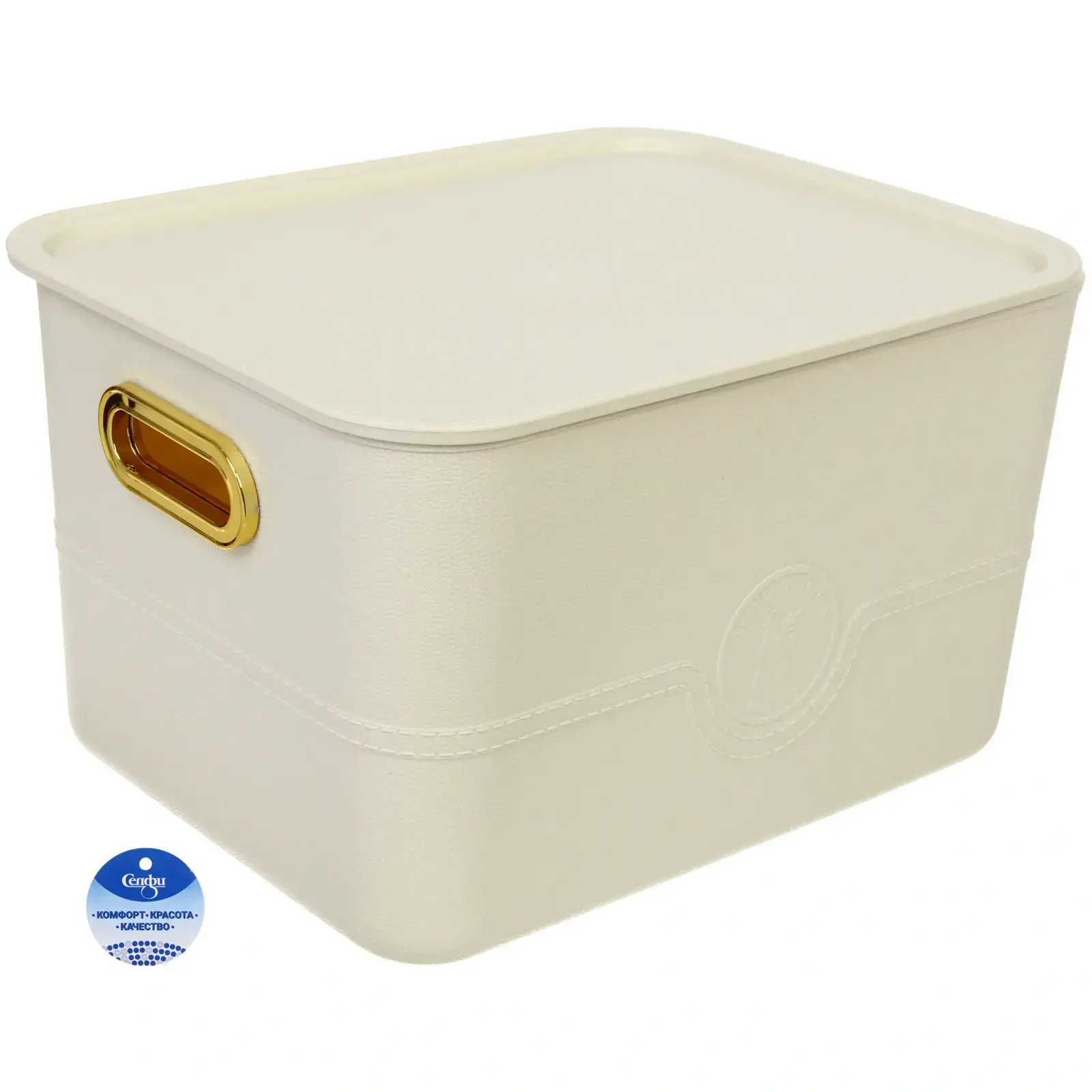 Корзина-органайзер 'ОКСФОРД' с крышкой, цвет айвори, 35х27х20,8см