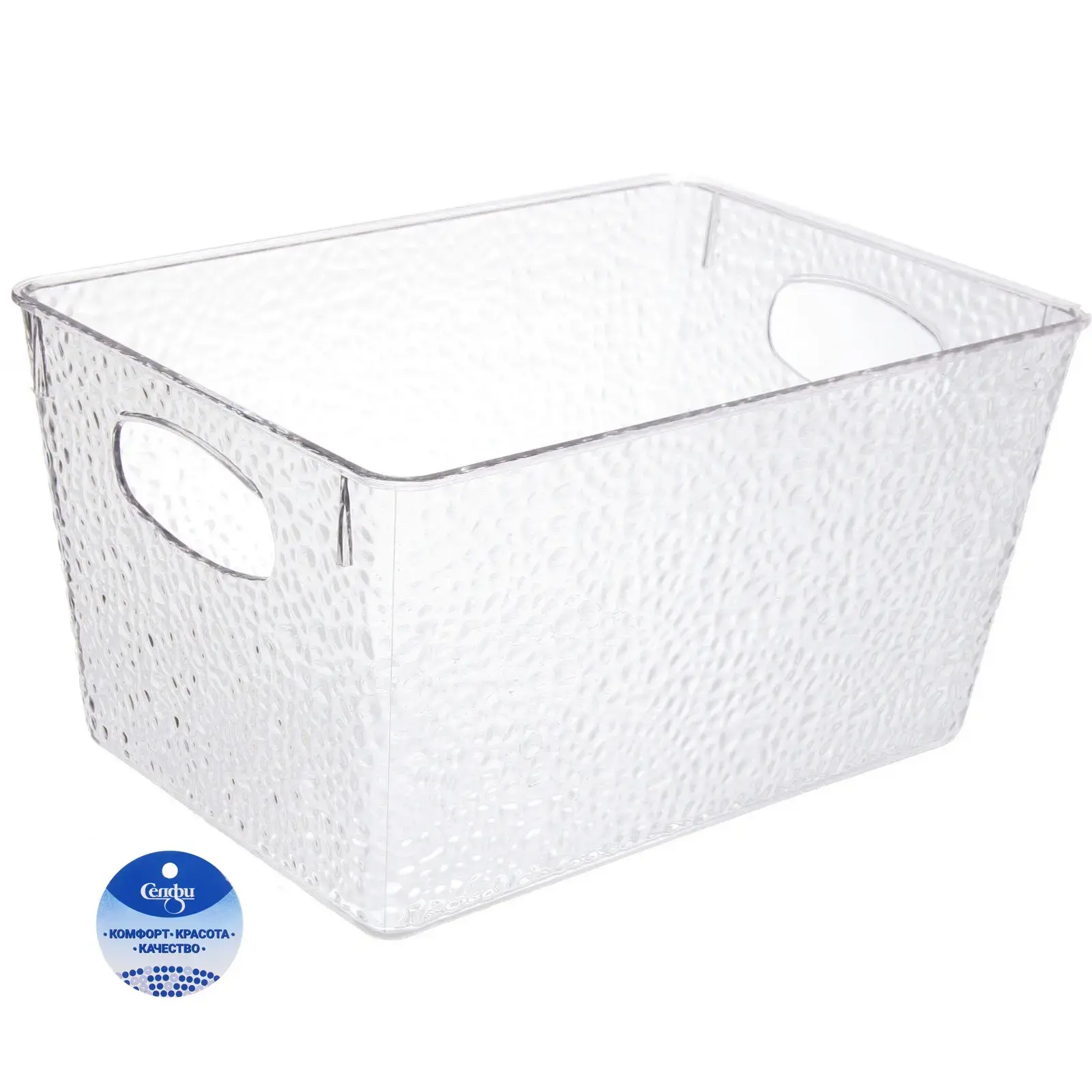 Корзина идеально подходит для хранения мелких предметов, канцелярии, игрушек или кухонных принадлежностей. Благодаря двум ручкам, она легко переносится, что делает её отличным выбором для использования как в доме, так и в офисе. Прозрачный материал позволяет быстро находить нужные вещи, экономя ваше время.