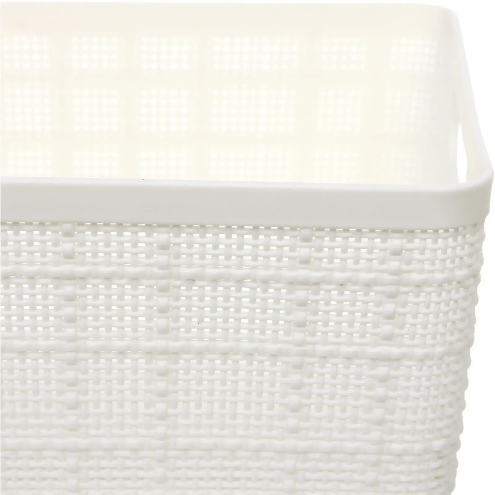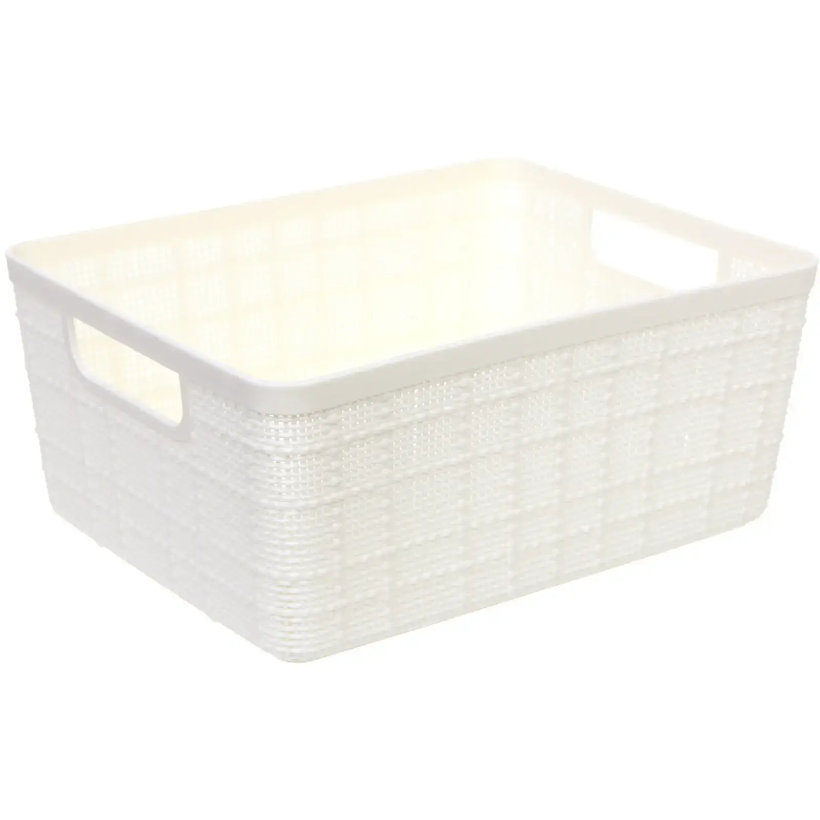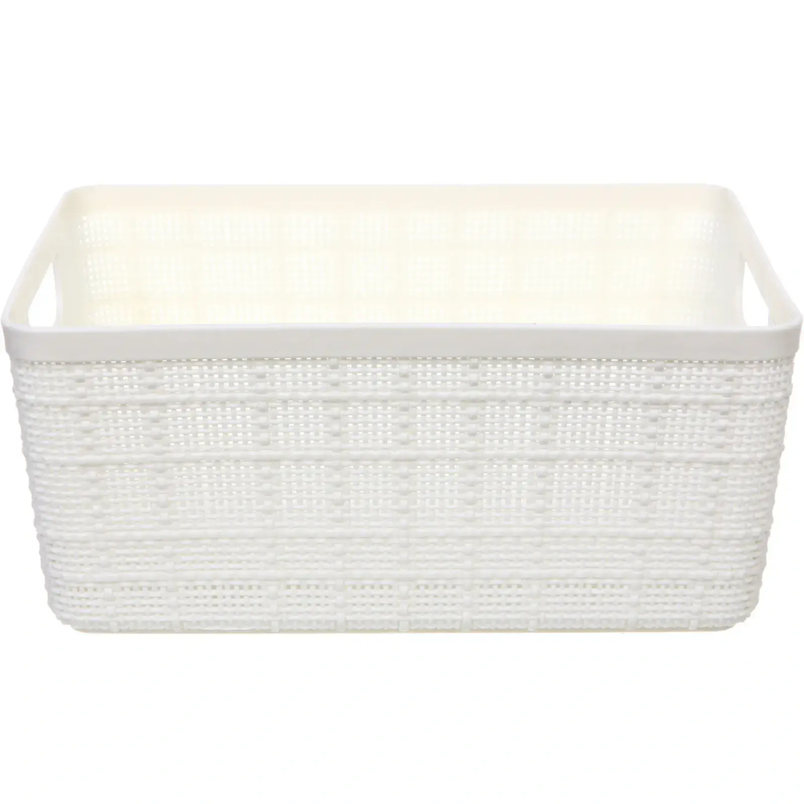 Корзина выполнена из прочного пластика, что гарантирует долговечность и легкость в уходе. Открытая верхняя часть позволяет легко помещать и извлекать вещи, а текстурированные боковые стенки добавляют стильный акцент. Боковые ручки обеспечивают удобство переноски, что делает корзину идеальной для использования в любом месте.
