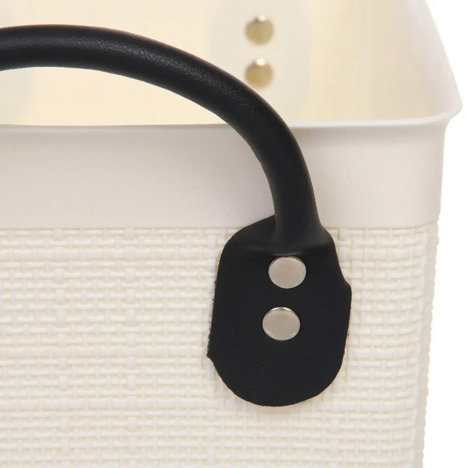 - Черные ручки из износостойкого кожзама с металлическим креплением обеспечивают удобную переноску