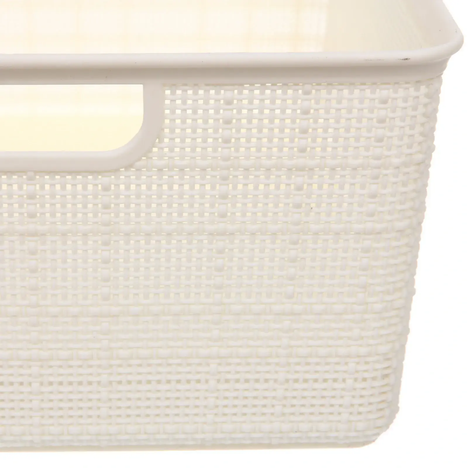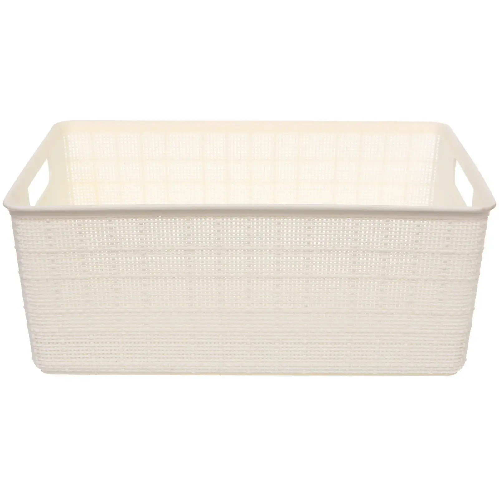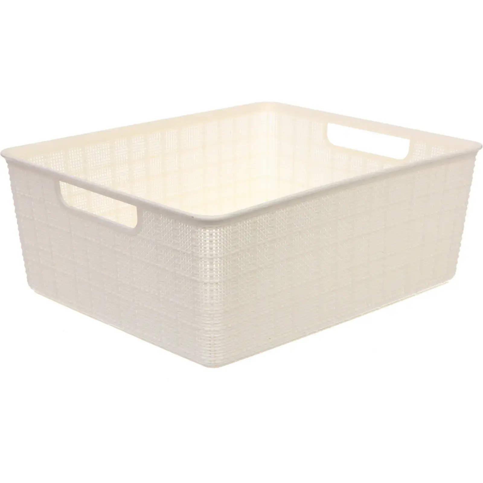 Модель изготовлена методом литья под давлением из экологичного полипропилена. Рифлёная поверхность стенок маскирует мелкие царапины, а округлые края ручек предотвращают дискомфорт при переноске. Точные размеры (35×29.2×13.2 см) позволяют размещать органайзер в стандартных нишах мебели.