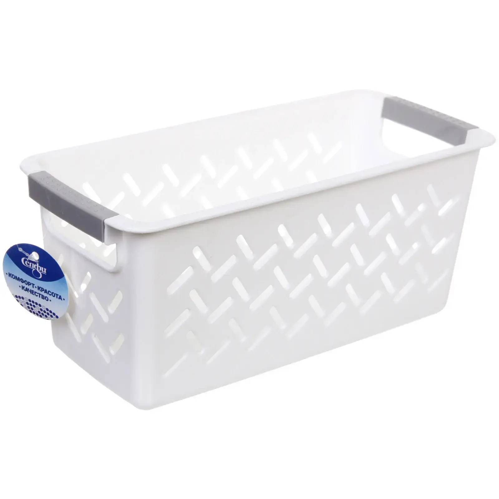 Выбирая эту корзину, вы получаете не только практичное решение для хранения, но и стильный элемент декора. Изготовленная из качественного пластика, она устойчива к повреждениям и легко чистится. Размеры 29х12.5х12 см делают её идеальной для размещения на полках, в шкафах или на столах. Серые ручки с текстурированной поверхностью обеспечивают надежный захват и удобство при переноске.