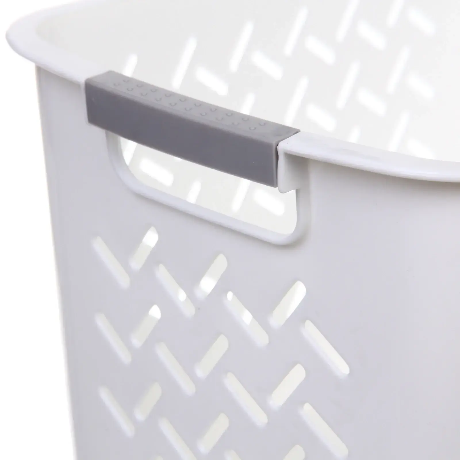 Корзина предназначена для повседневного использования и подходит для любого интерьера. Ее размеры 30.5*21*17 см делают ее достаточно вместительной, чтобы хранить множество вещей, при этом не занимая много места. Удобные серые ручки обеспечивают легкость в переноске, а перфорация на боковых стенках позволяет воздуху циркулировать, предотвращая накопление запахов.