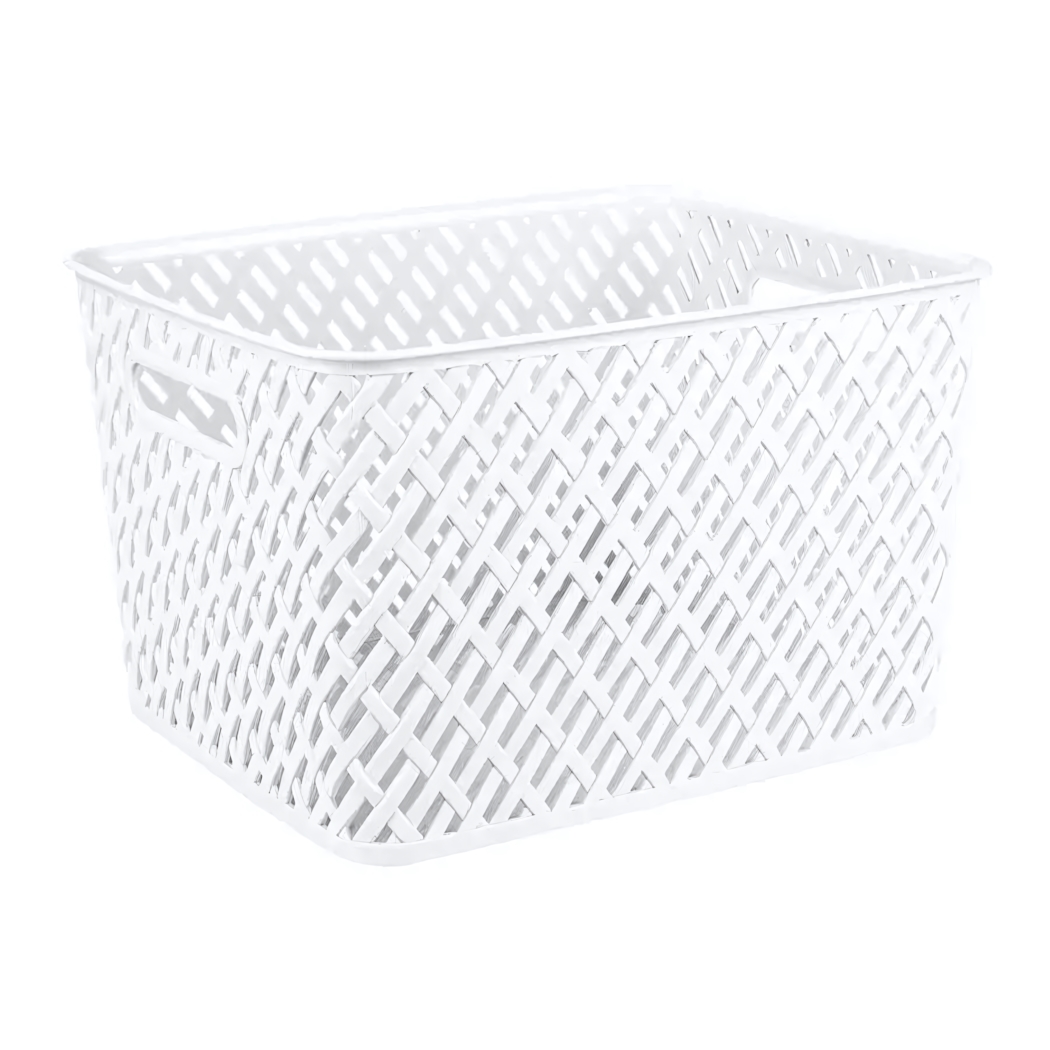Корзина пластиковая плетеная, 35х22.5см, белая, для хранения вещей, органайзер