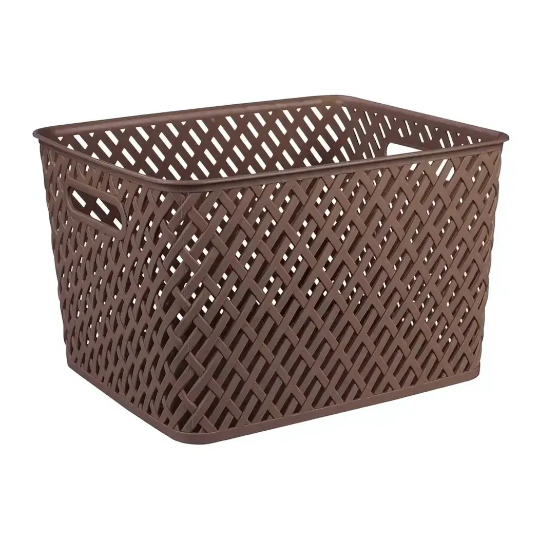 Корзина плетеная пластиковая прямоугольная, 35х22,5 см, коричневая, решетчатая, с ручками для удобной переноски