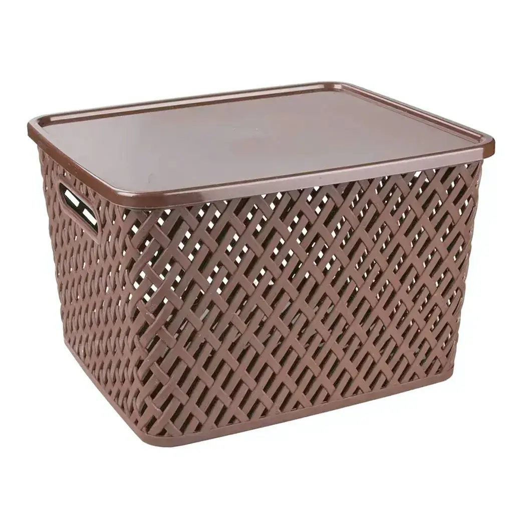 Корзина для хранения 'Плетенка' с крышкой, 35х22.5см, цвет коричневый