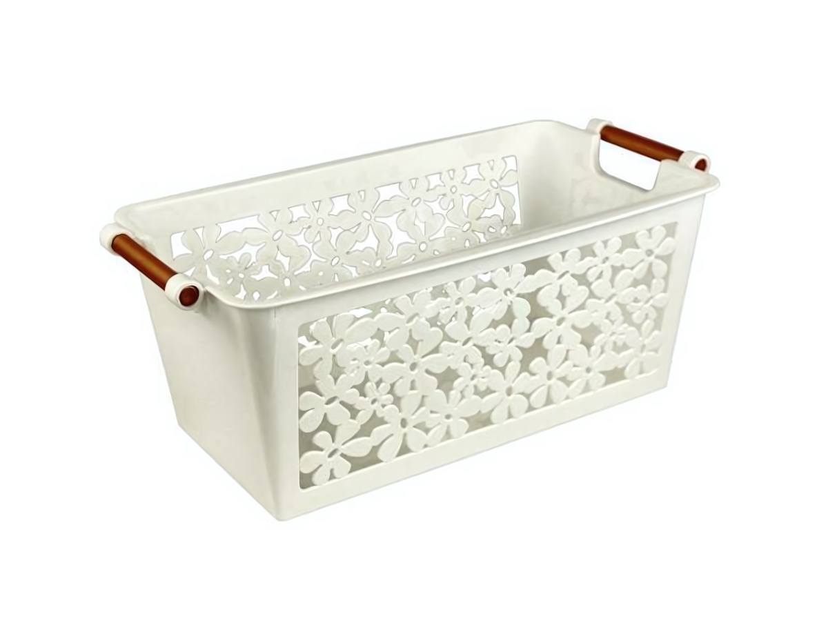 Корзина для хранения «Романтика» 23х12х9 см, белая, пластик, цветочный узор, деревянные ручки