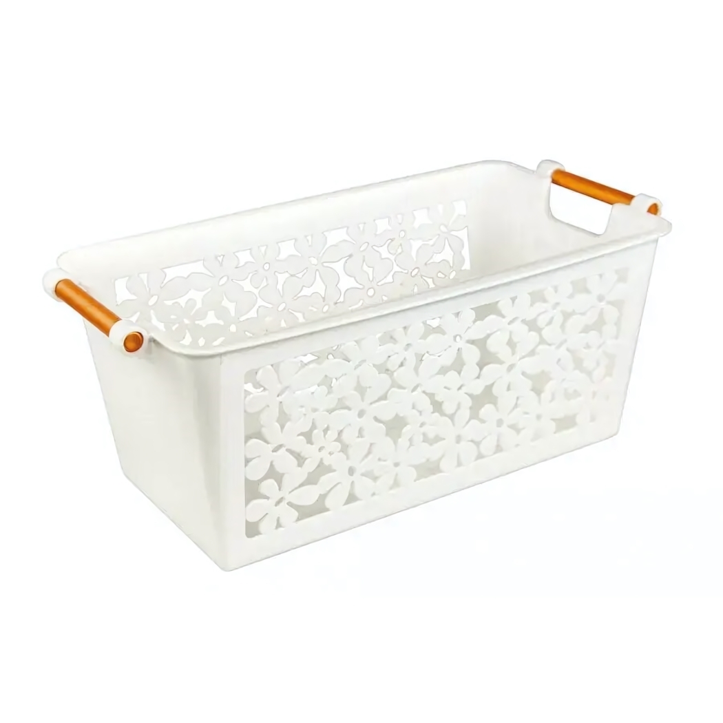 Корзина пластиковая «Романтика» с цветочным узором, 24.5х14.5х11см, белая с оранжевыми ручками