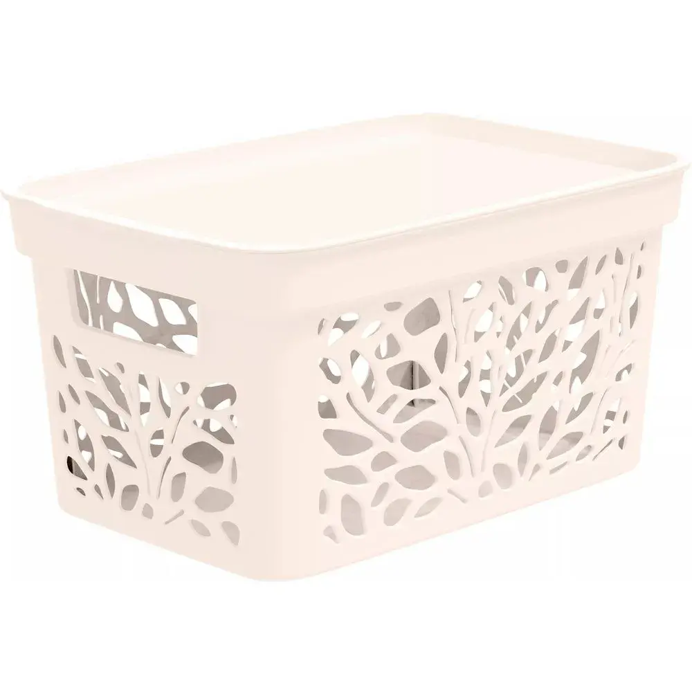 Корзина с крышкой "Leaves" 10л, комплект 12 штук, 33.3х17.4см, молочный цвет
