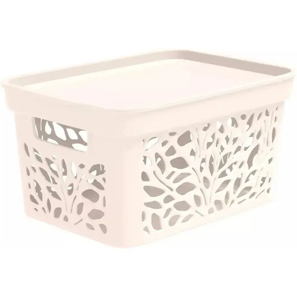 Корзина для хранения "Leaves" с крышкой, пластик, 5.5 л, узор листьев, 274x140 мм, молочный цвет