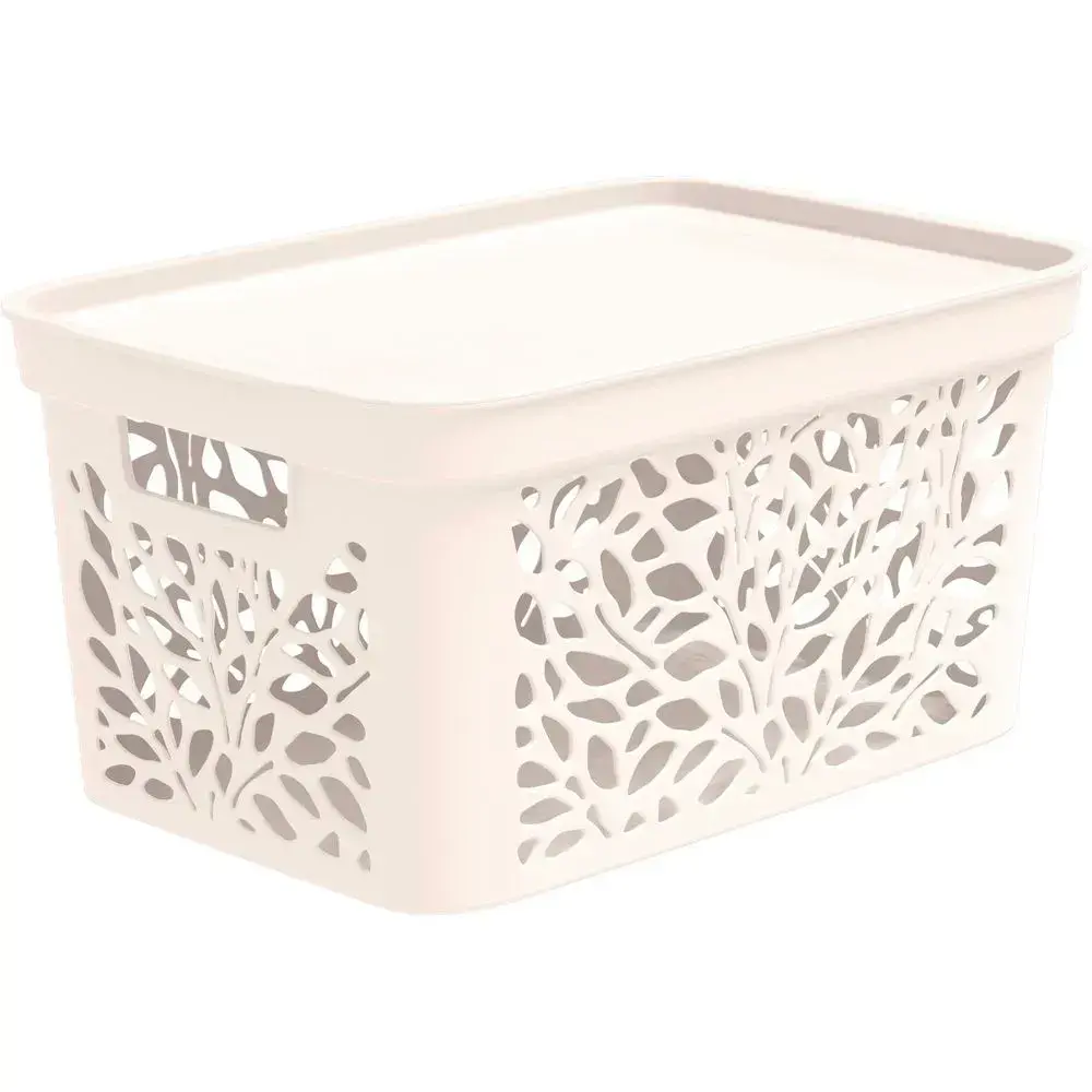 Корзина с крышкой "Leaves" 18л, 405х207мм, молочный, комплект 11 шт для хранения